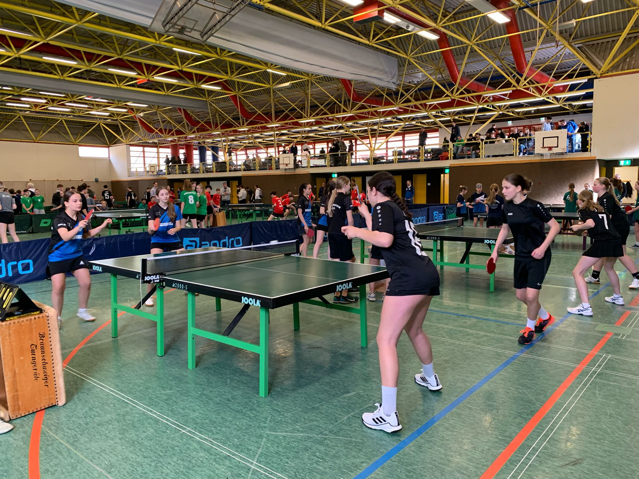 Am 13.3. fand der diesjährige Landesentscheid im TT in Osnabrück statt. Da die Mädchen des Mariengymnasiums in den letzten beiden Jahren den Sieg geschafft und damit die Fahrkarte nach Berlin zum Bundesfinale gelöst hatten, war die Truppe voller Motivation und Spannung angereist. Das erste Spiel ging gegen das Gymnasium aus Vechelde; unsere vermeintlich stärksten Gegner. Im Doppel holten wir einen Punkt, in den Einzeln vier weitere. Als wir bereits 5:2 führten, legte der Lehrer des gegnerischen Teams Einspruch beim Oberschiedsgericht ein, da er einen Notationsfehler auf dem Anschreibebogen festgestellt hatte. Anstatt dass sie ein Einzel aberkannt wurde, ging der gesamte Sieg an die Gegner. Was für ein Schlag in die Magenkuhle! Frustriert und voller Unverständnis für diese Entscheidung mussten die Mädchen ohne Pause gegen das Anton- Günther- Gymnasium aus Oldenburg antreten. Die Gegner waren stark, profitierten allerdings von der geknickten Stimmung unserer Spielerinnen und gewannen daher klar. Das letzte Match haben wir deutlich gewonnen. Mit einem dritten Platz und vielen neuen Erfahrungen ging es abends zurück nach Jever. Im nächsten Jahr wollen sie es auf jeden Fall erneut versuchen! Das Team hat wirklich großartig gespielt!