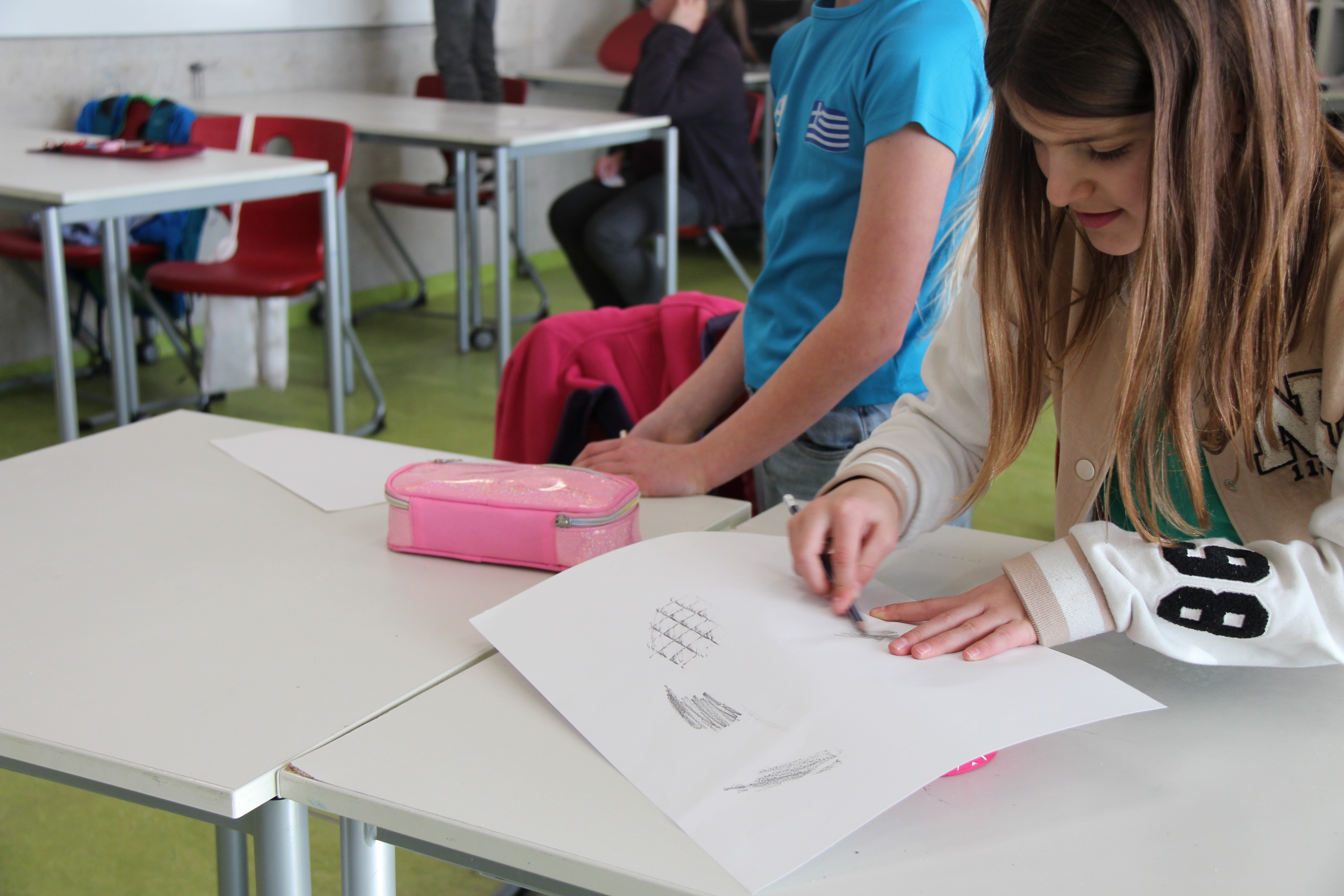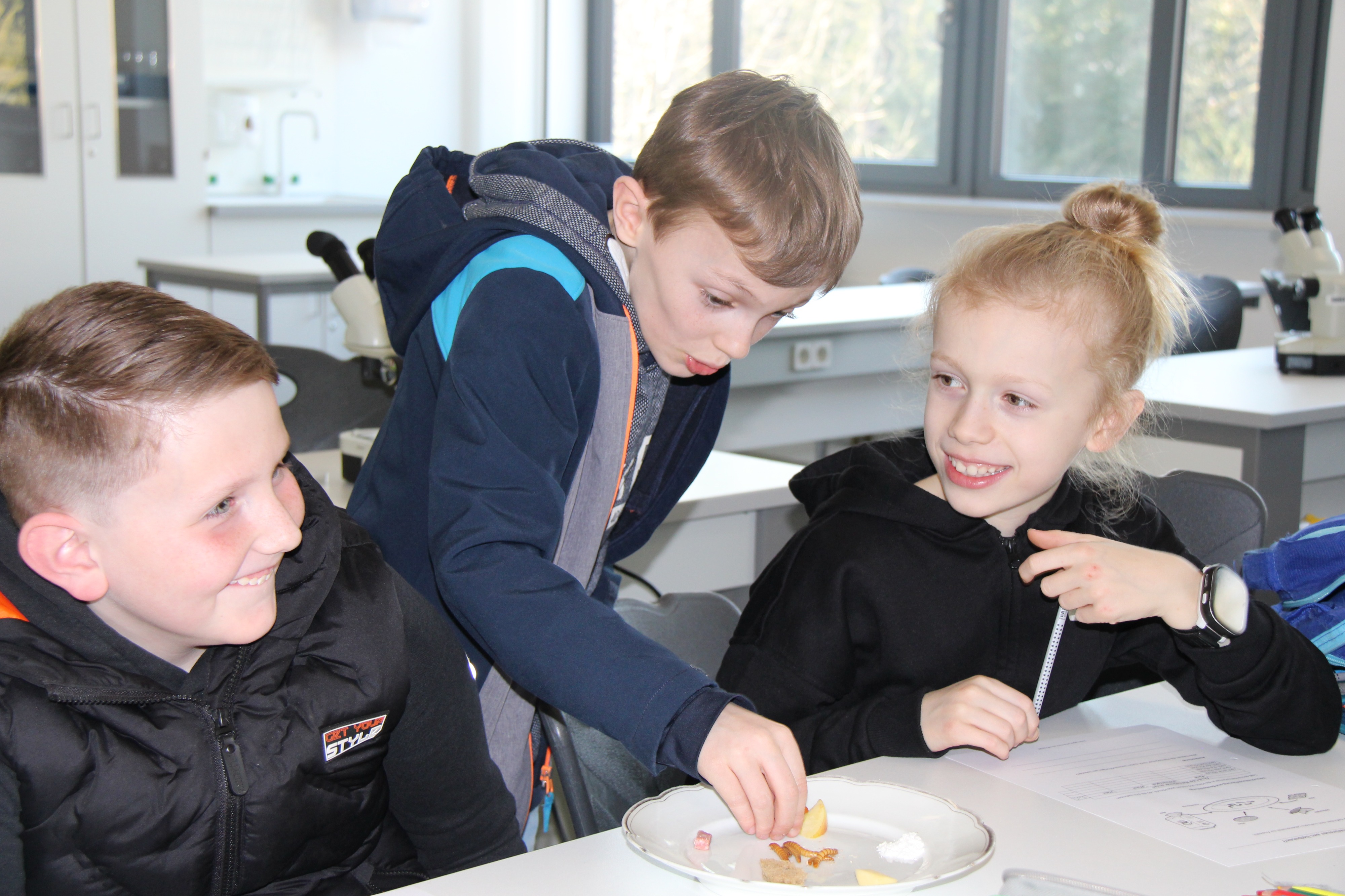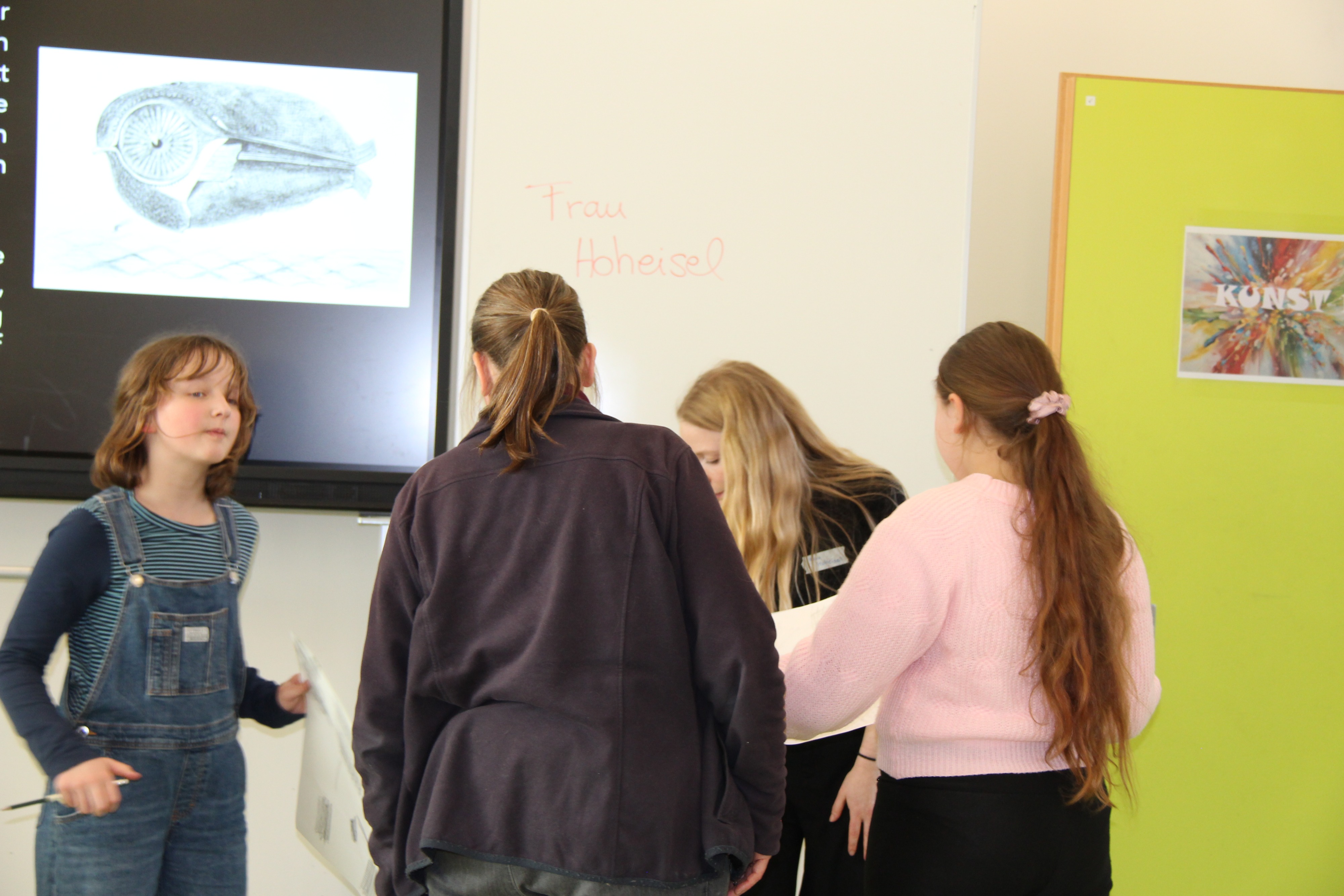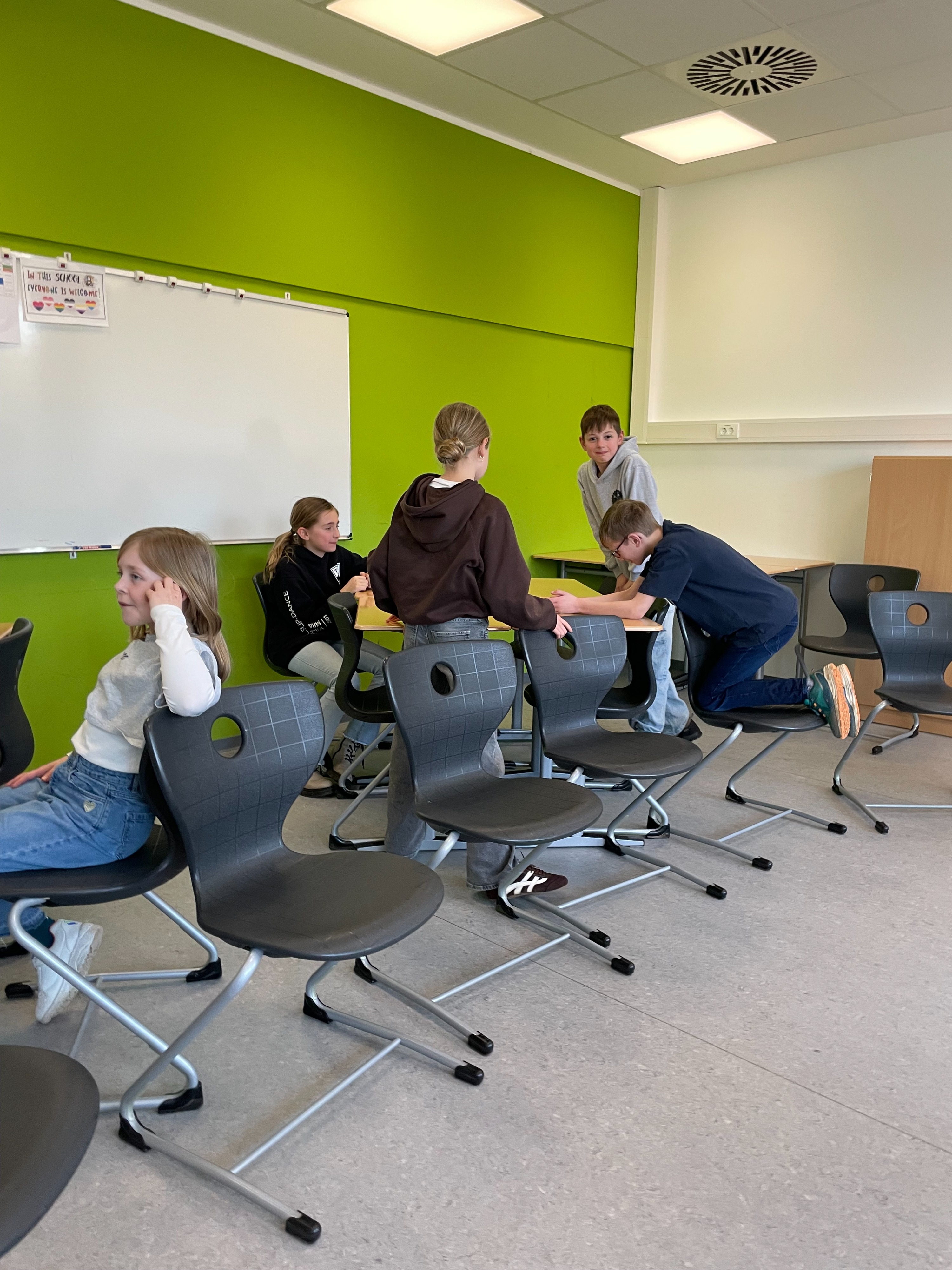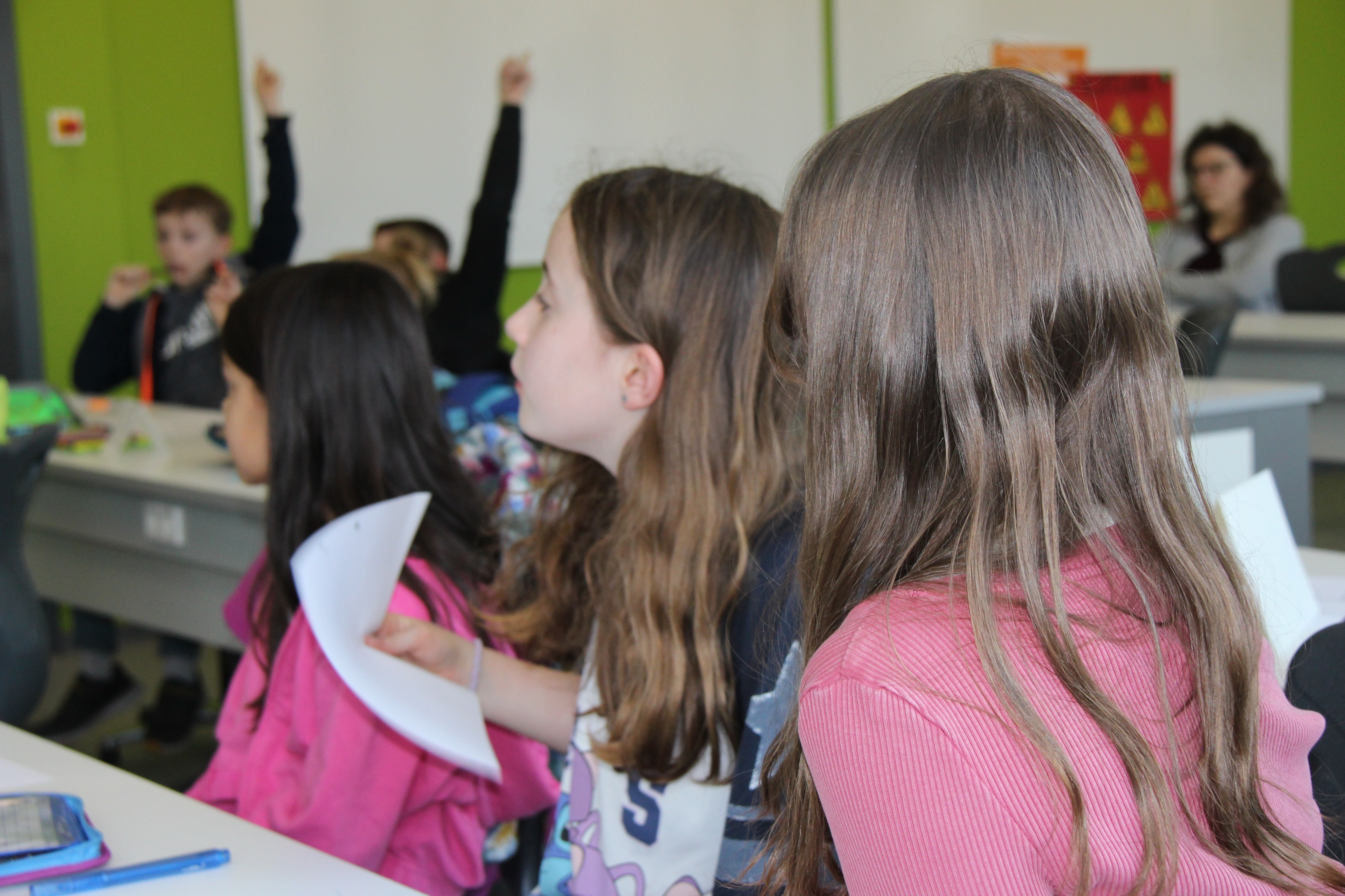 Herr Ploeger-Lobeck stellte zu Beginn die beteiligten Lehrkräfte vor. Im Anschluss wurde ein Gruppenfoto mit den Grundschülerinnen und Grundschülern aufgenommen. Danach fanden sich die Schülerinnen und Schüler in ihren jeweiligen Gruppen bei der ihnen zugewiesenen Lehrkraft ein, die sie an diesem Tag durch die verschiedenen Räumlichkeiten begleiten sollte. Gemeinsam führten die Lehrkräfte die insgesamt 18 Schülergruppen zu ihren Unterrichtsräumen, wo bereits die jeweiligen Fachlehrkräfte auf die schnuppernden Kinder warteten.