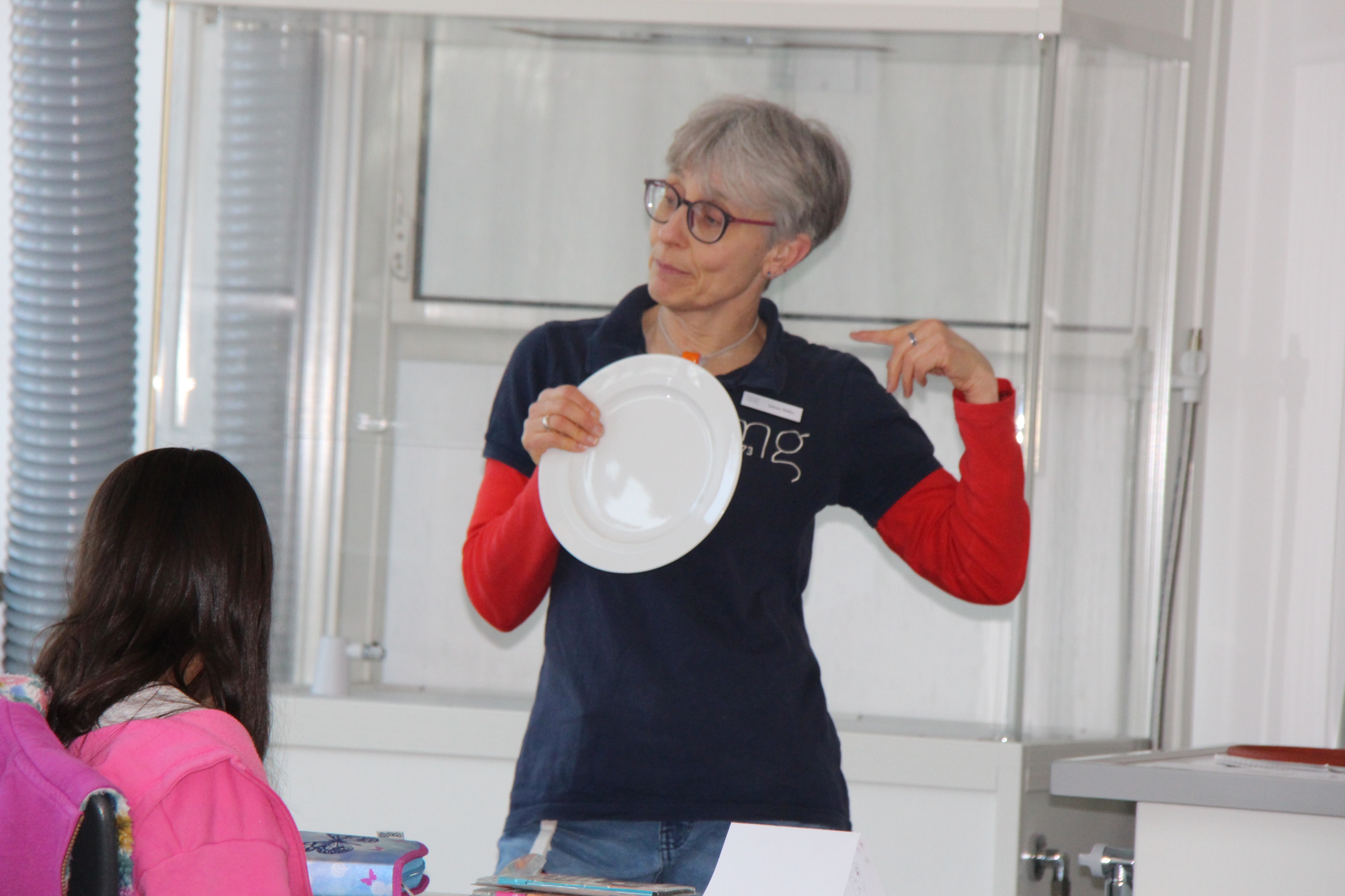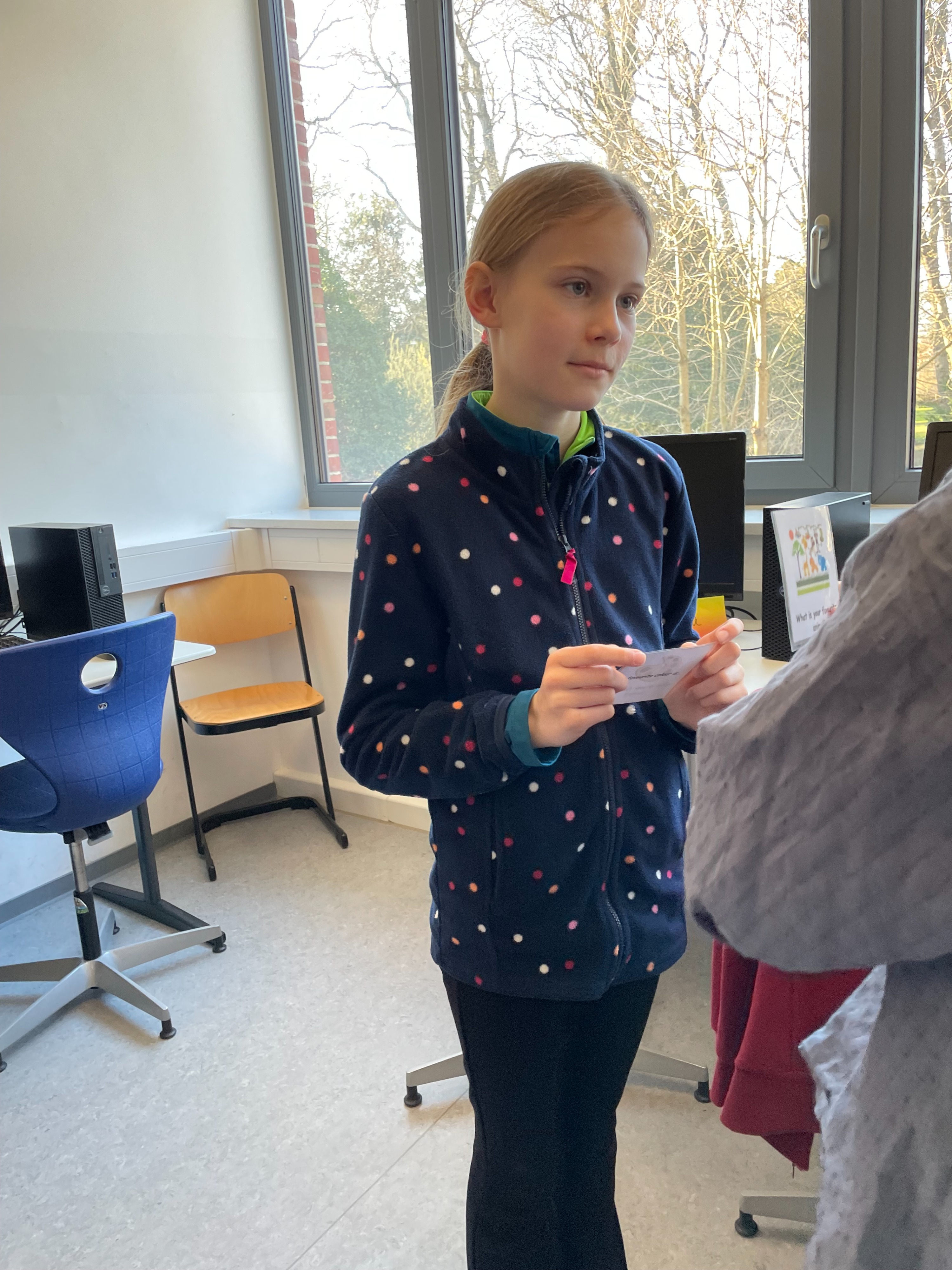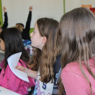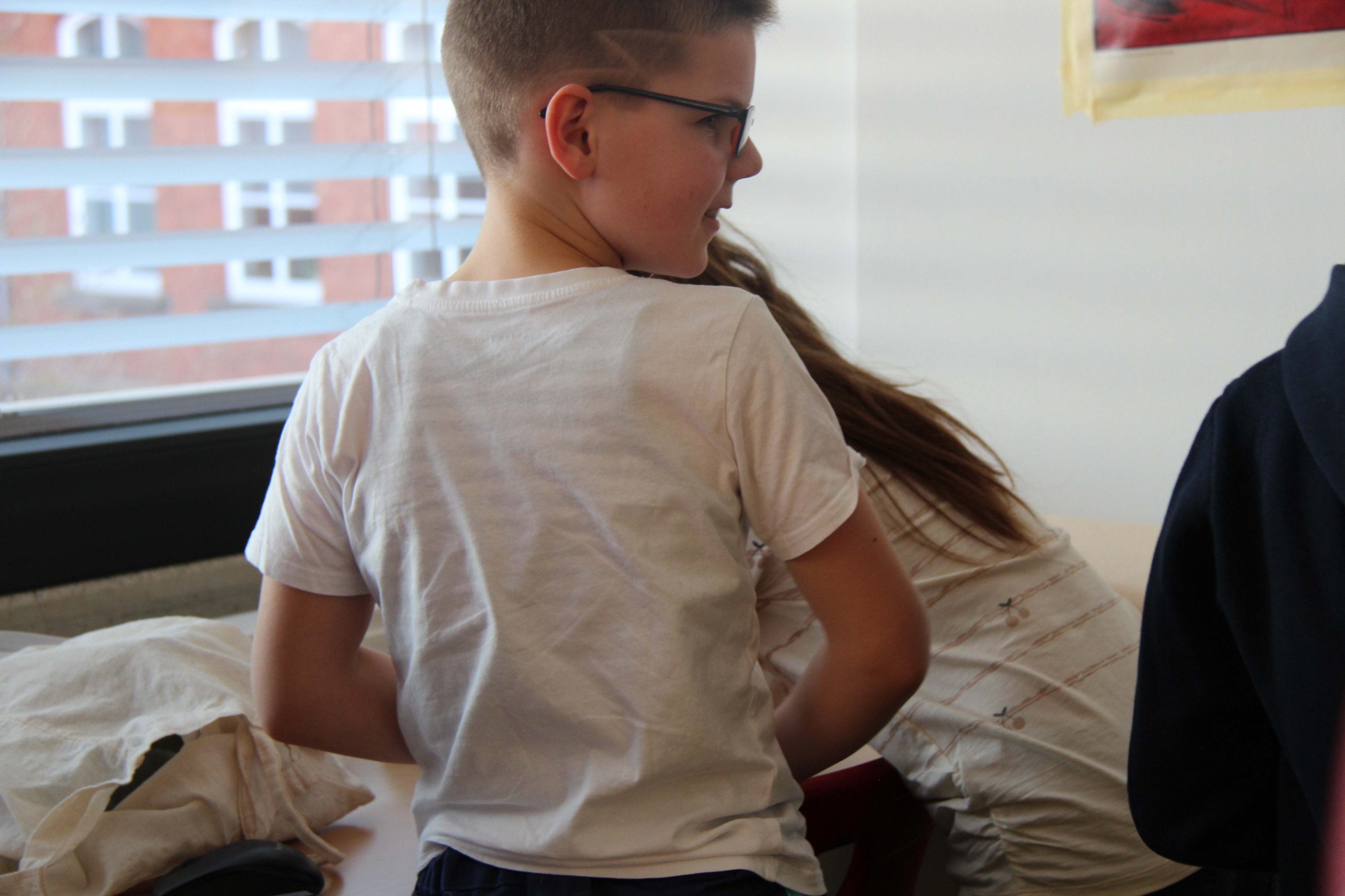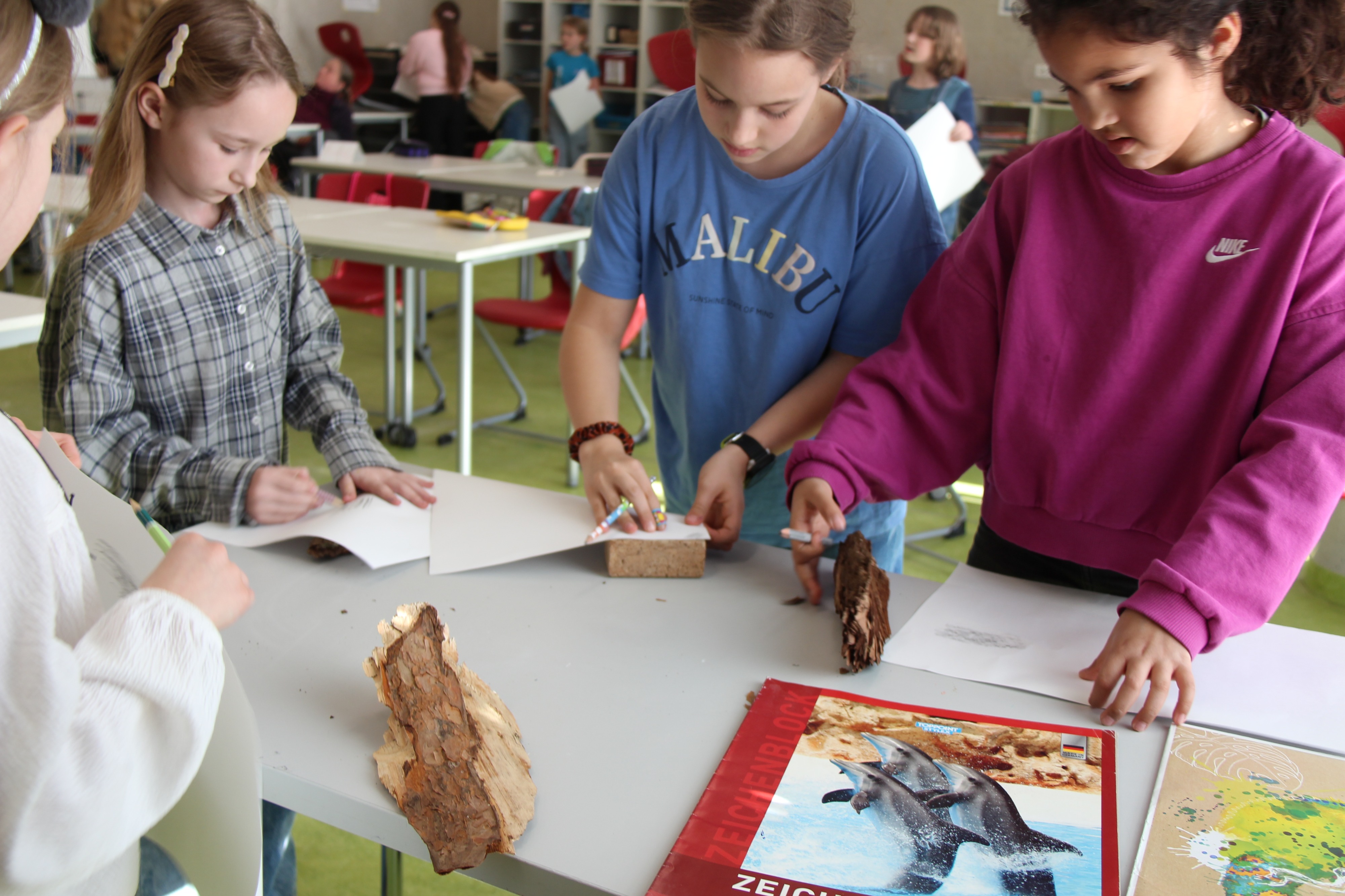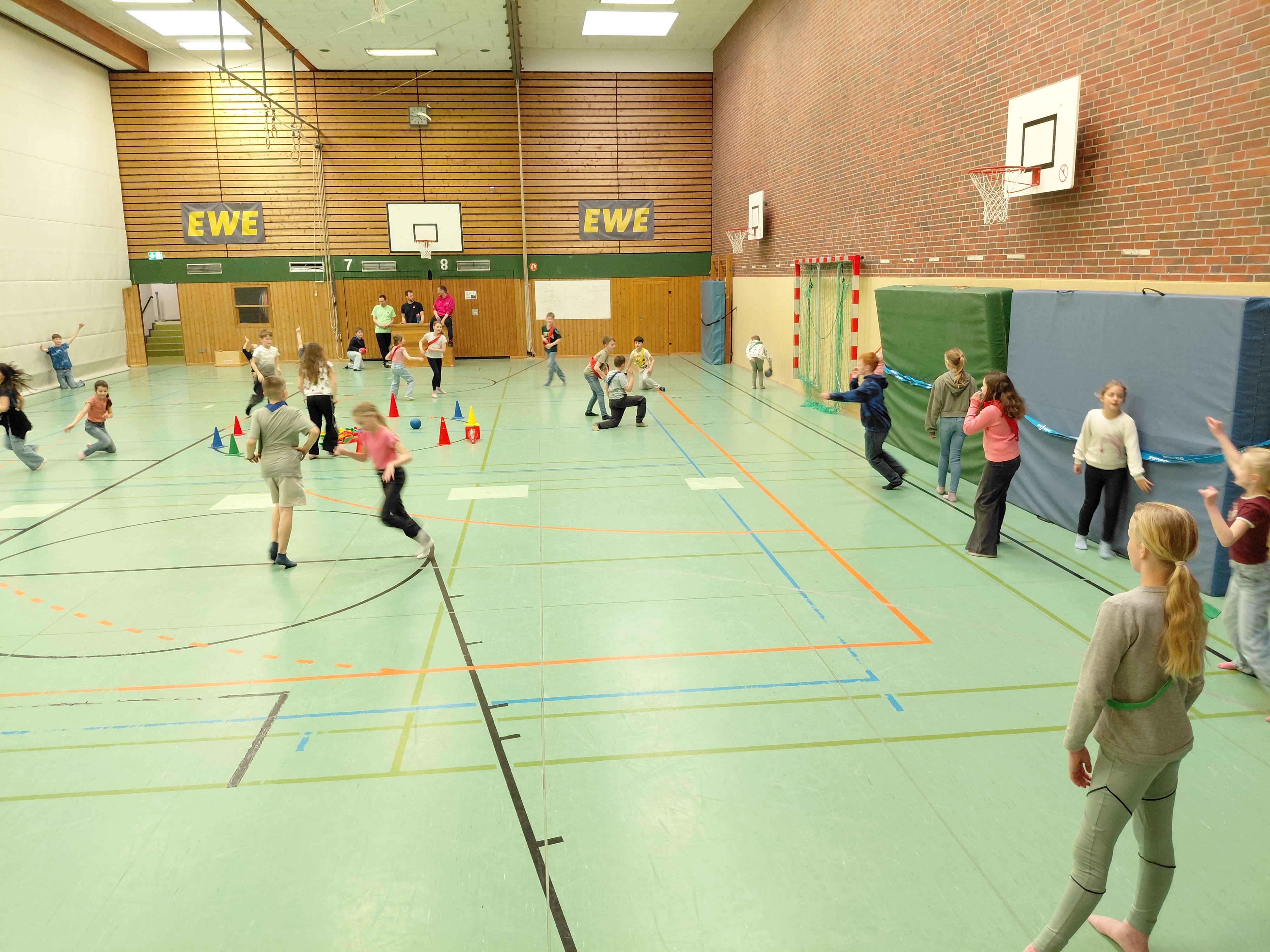 Herr Ploeger-Lobeck stellte zu Beginn die beteiligten Lehrkräfte vor. Im Anschluss wurde ein Gruppenfoto mit den Grundschülerinnen und Grundschülern aufgenommen. Danach fanden sich die Schülerinnen und Schüler in ihren jeweiligen Gruppen bei der ihnen zugewiesenen Lehrkraft ein, die sie an diesem Tag durch die verschiedenen Räumlichkeiten begleiten sollte. Gemeinsam führten die Lehrkräfte die insgesamt 18 Schülergruppen zu ihren Unterrichtsräumen, wo bereits die jeweiligen Fachlehrkräfte auf die schnuppernden Kinder warteten.