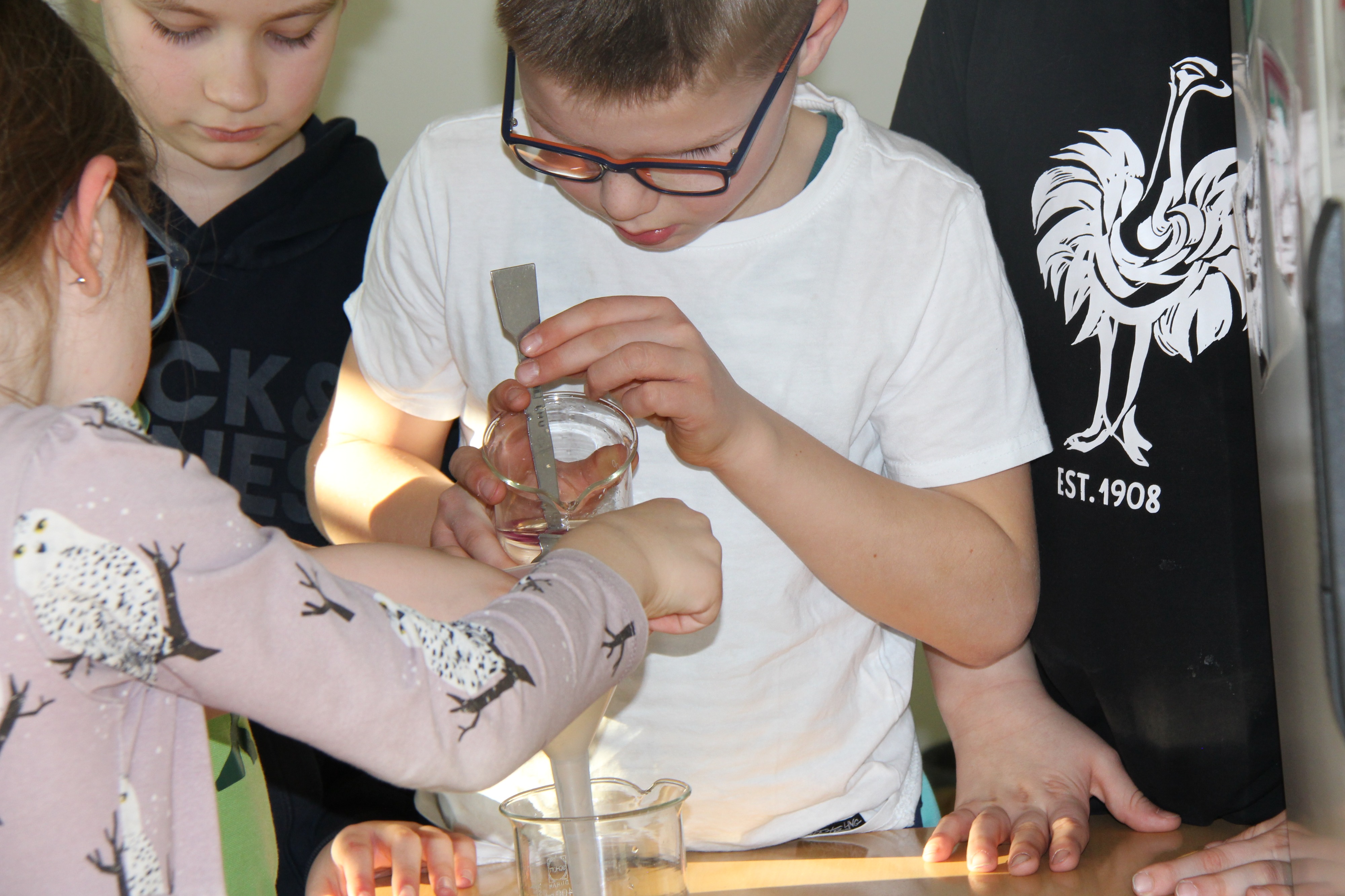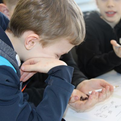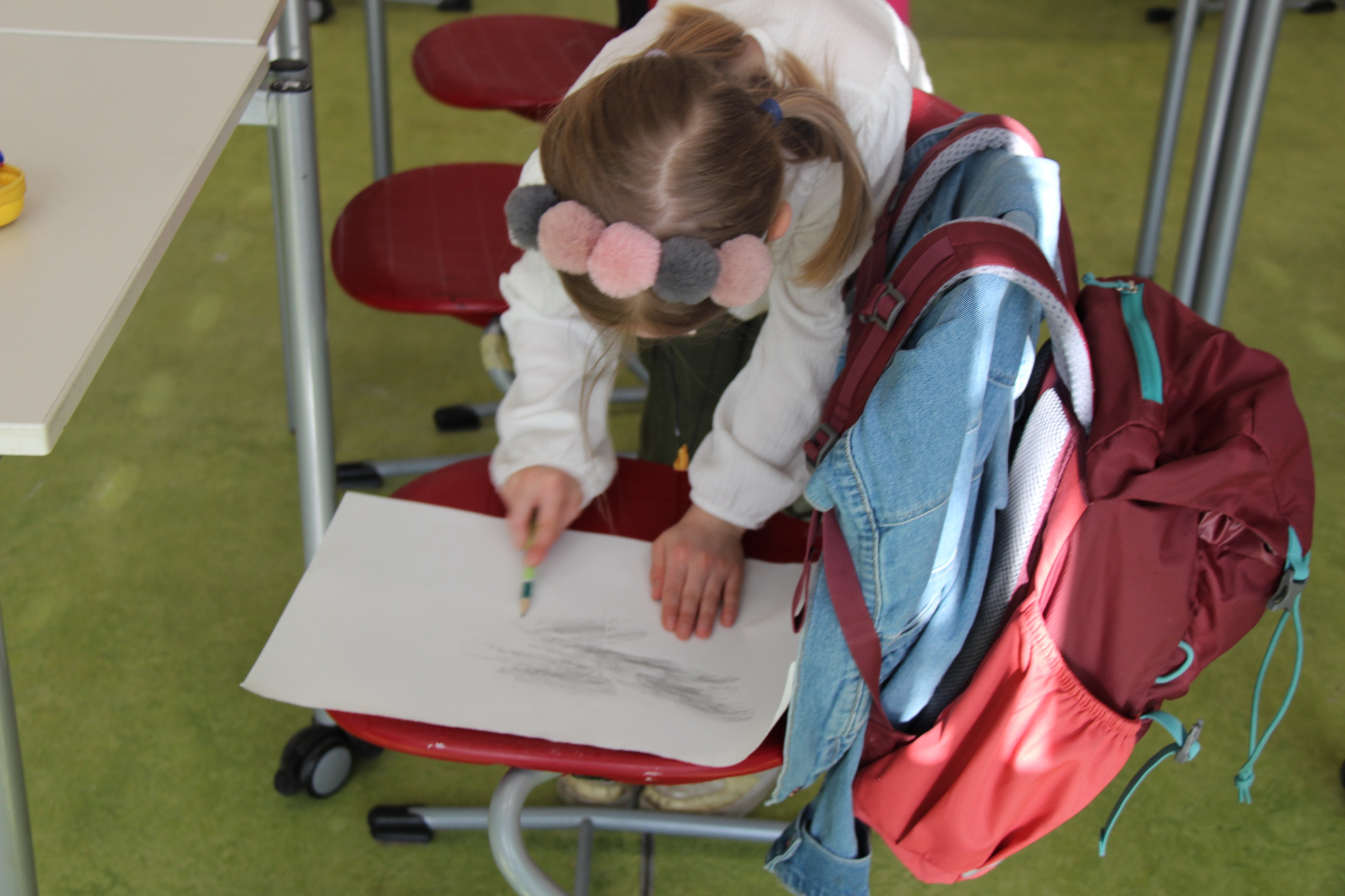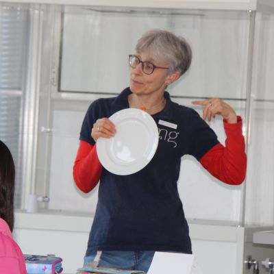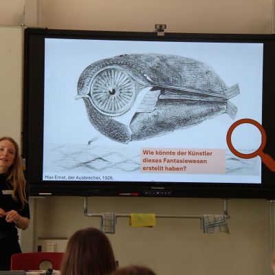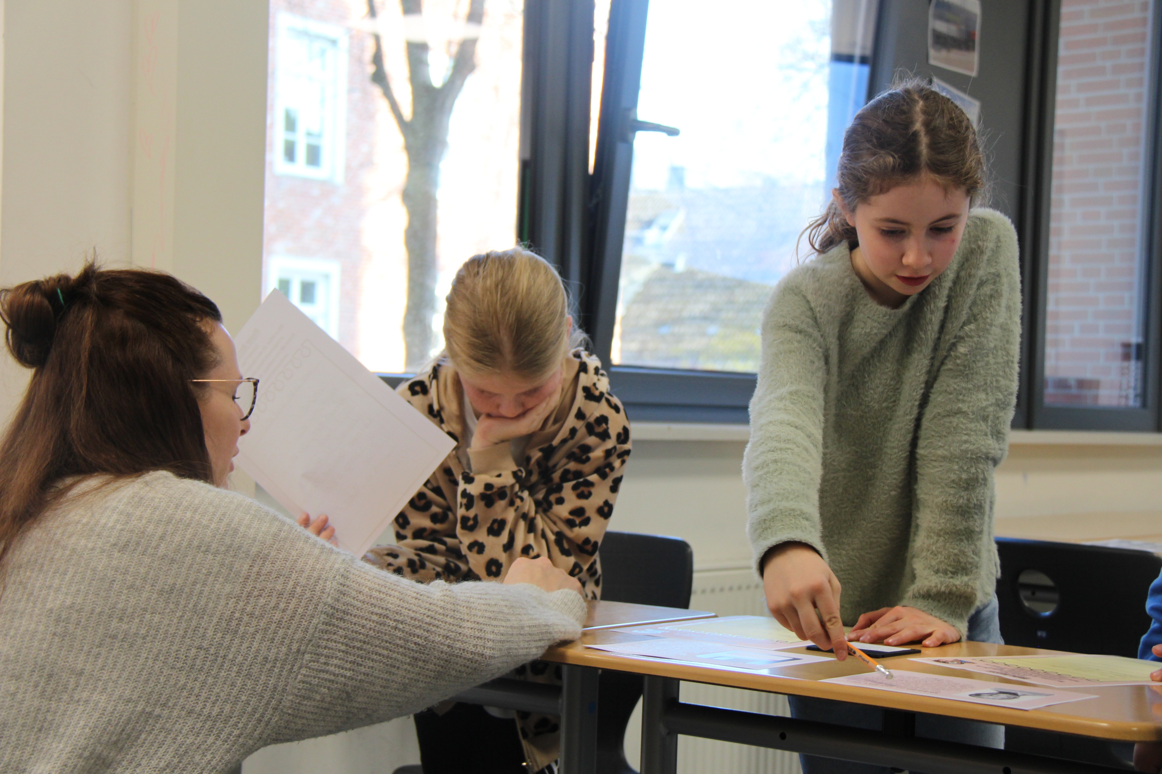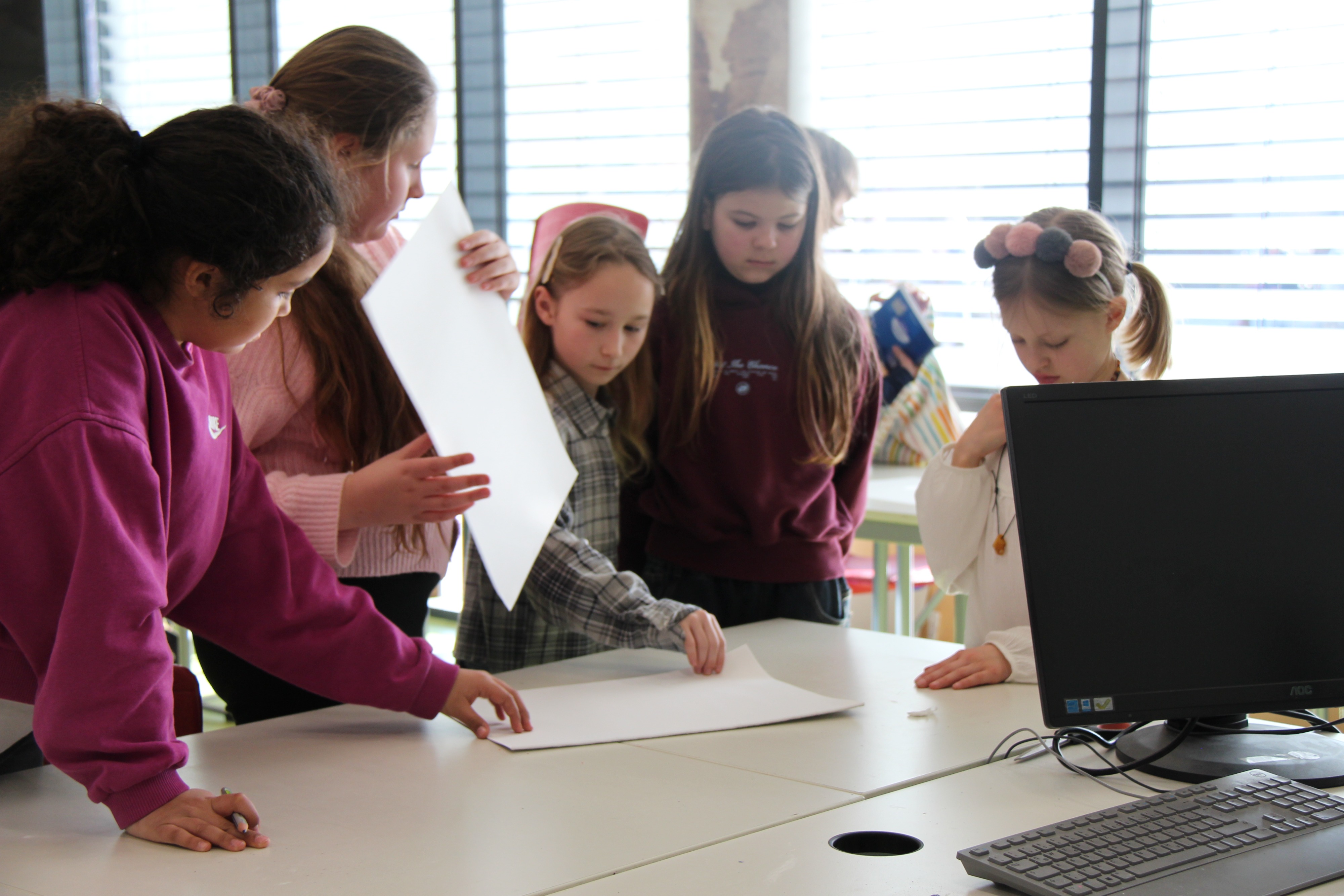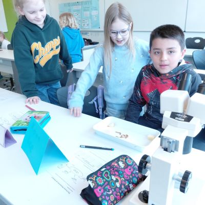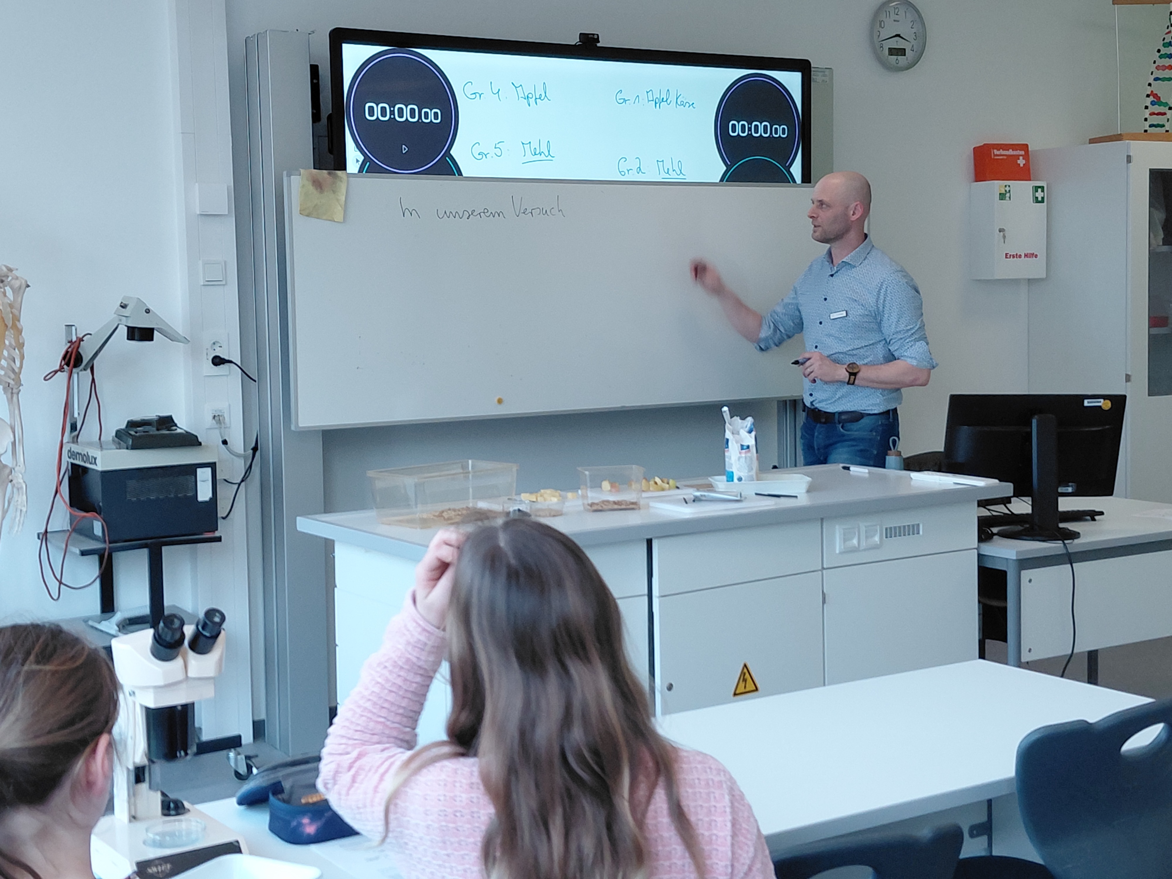 Herr Ploeger-Lobeck stellte zu Beginn die beteiligten Lehrkräfte vor. Im Anschluss wurde ein Gruppenfoto mit den Grundschülerinnen und Grundschülern aufgenommen. Danach fanden sich die Schülerinnen und Schüler in ihren jeweiligen Gruppen bei der ihnen zugewiesenen Lehrkraft ein, die sie an diesem Tag durch die verschiedenen Räumlichkeiten begleiten sollte. Gemeinsam führten die Lehrkräfte die insgesamt 18 Schülergruppen zu ihren Unterrichtsräumen, wo bereits die jeweiligen Fachlehrkräfte auf die schnuppernden Kinder warteten.