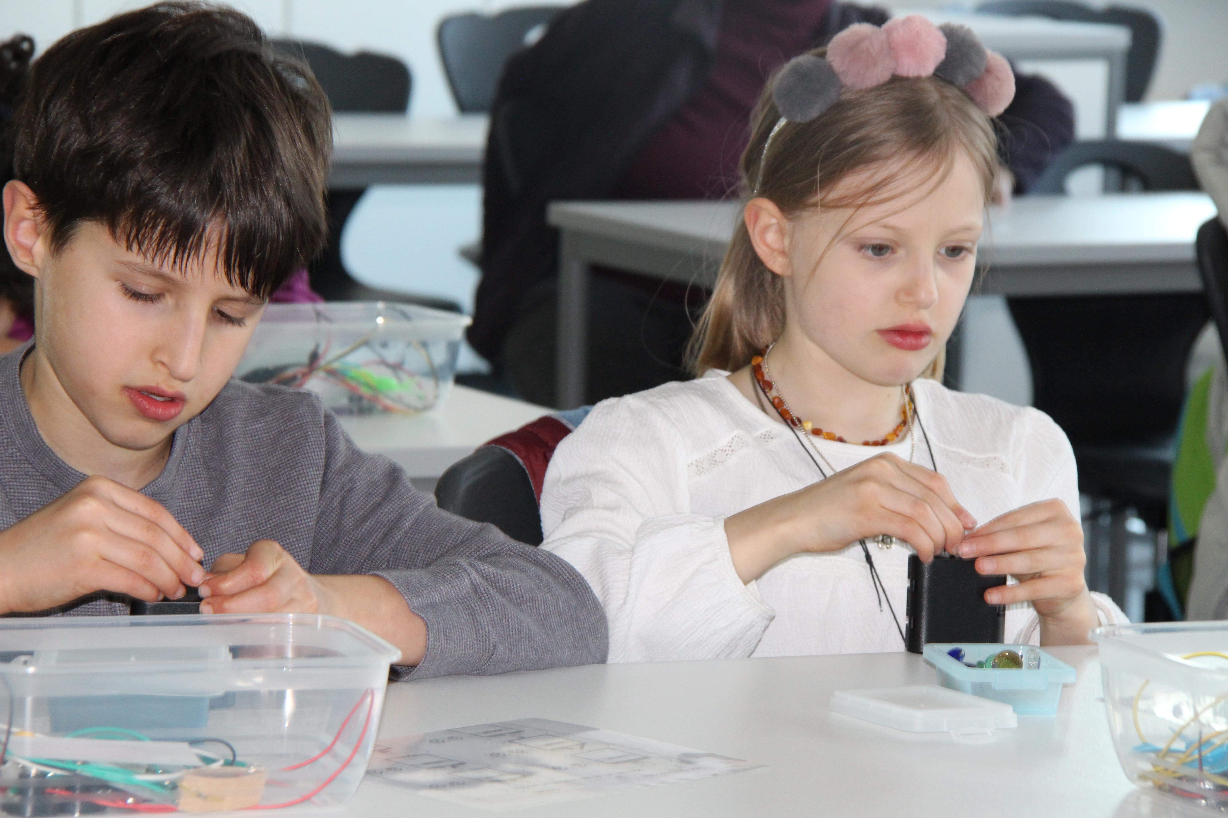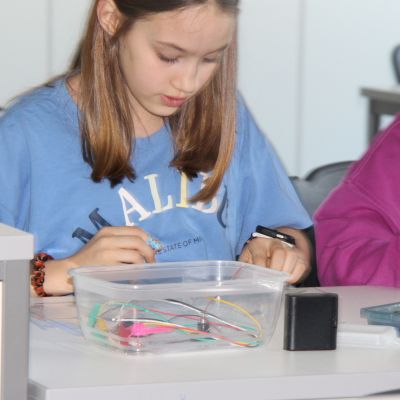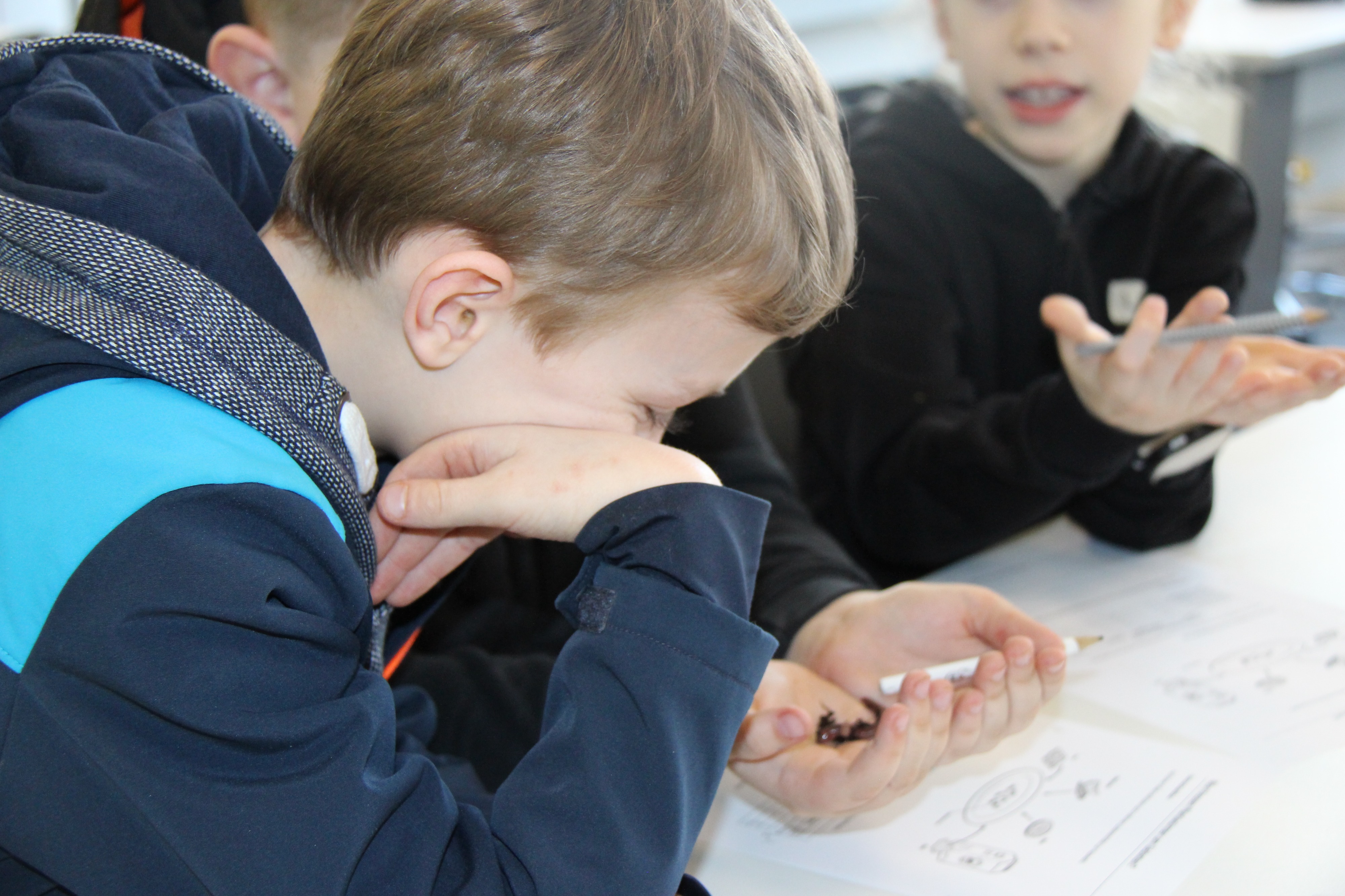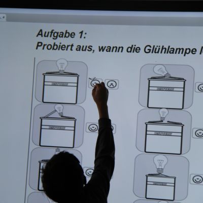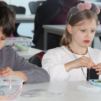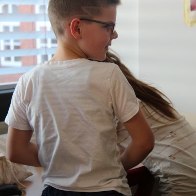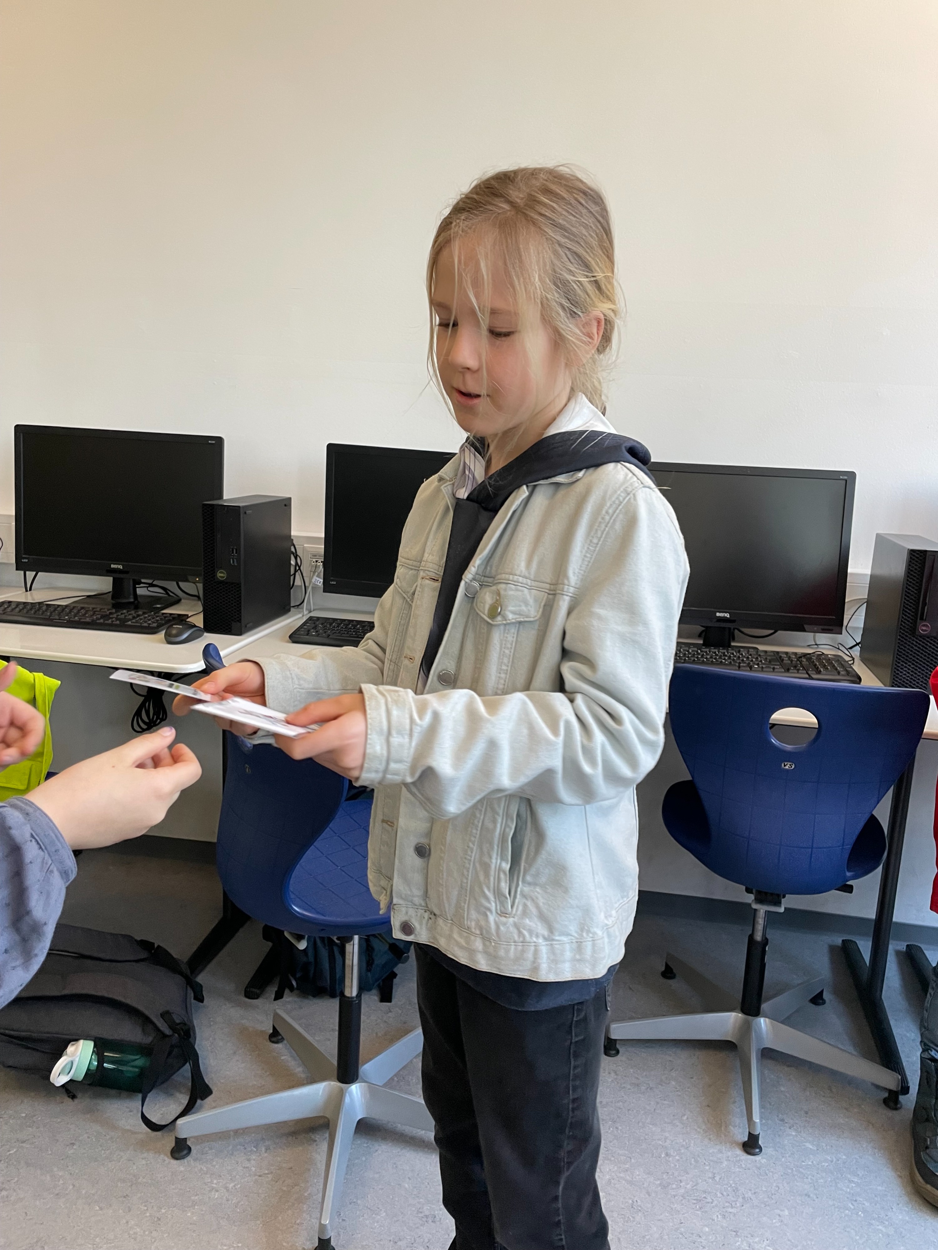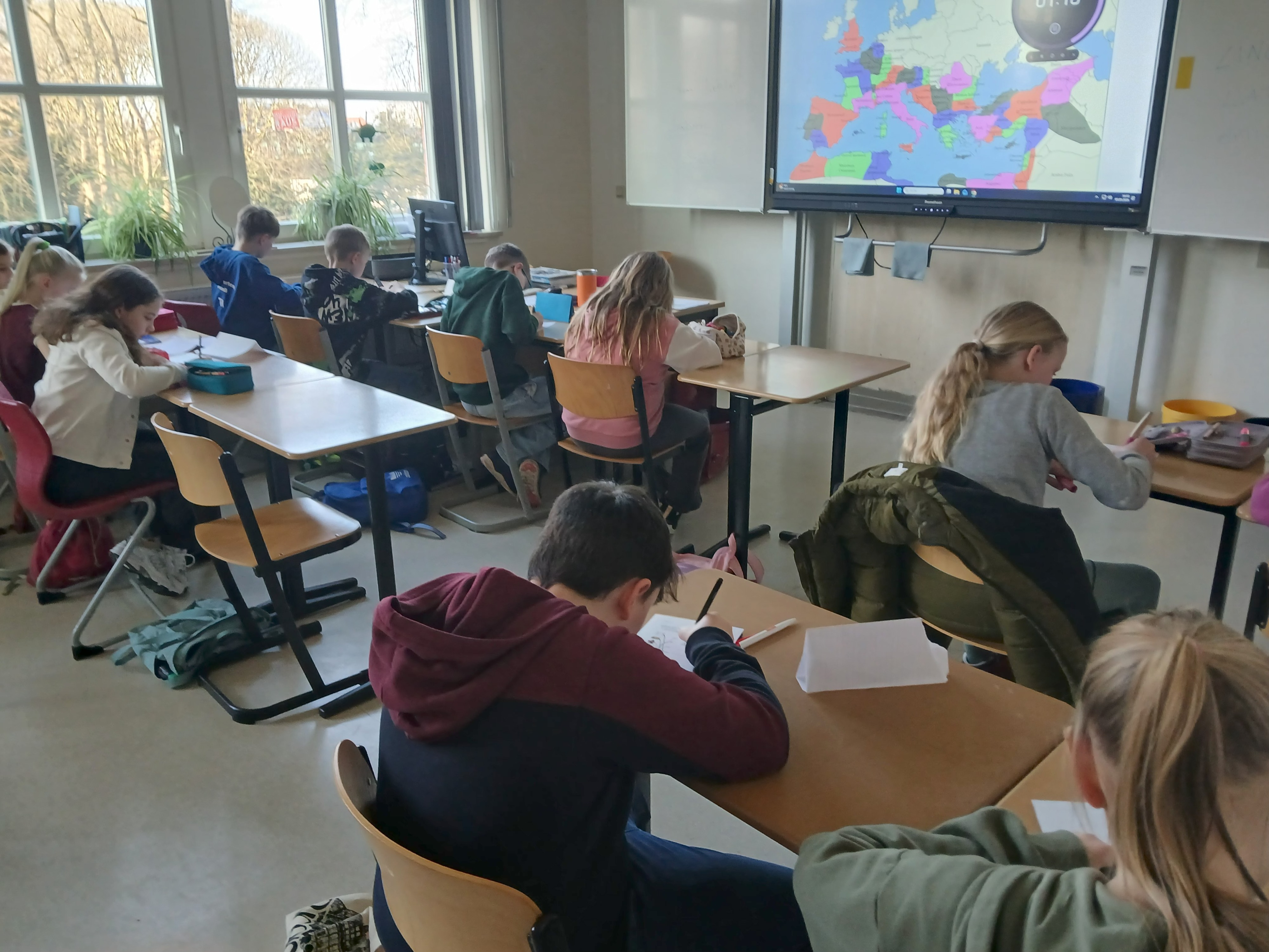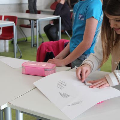 Herr Ploeger-Lobeck stellte zu Beginn die beteiligten Lehrkräfte vor. Im Anschluss wurde ein Gruppenfoto mit den Grundschülerinnen und Grundschülern aufgenommen. Danach fanden sich die Schülerinnen und Schüler in ihren jeweiligen Gruppen bei der ihnen zugewiesenen Lehrkraft ein, die sie an diesem Tag durch die verschiedenen Räumlichkeiten begleiten sollte. Gemeinsam führten die Lehrkräfte die insgesamt 18 Schülergruppen zu ihren Unterrichtsräumen, wo bereits die jeweiligen Fachlehrkräfte auf die schnuppernden Kinder warteten.