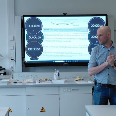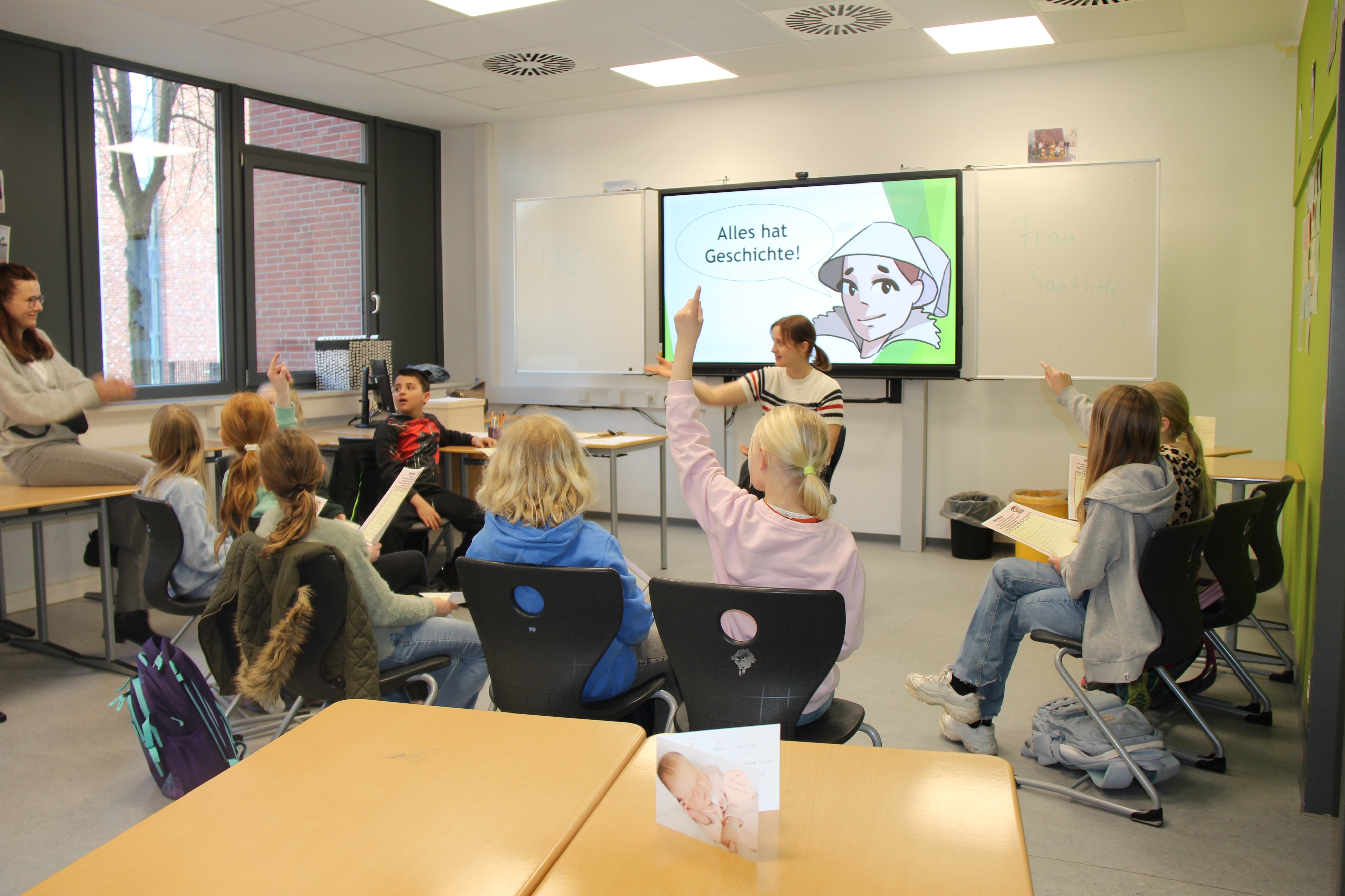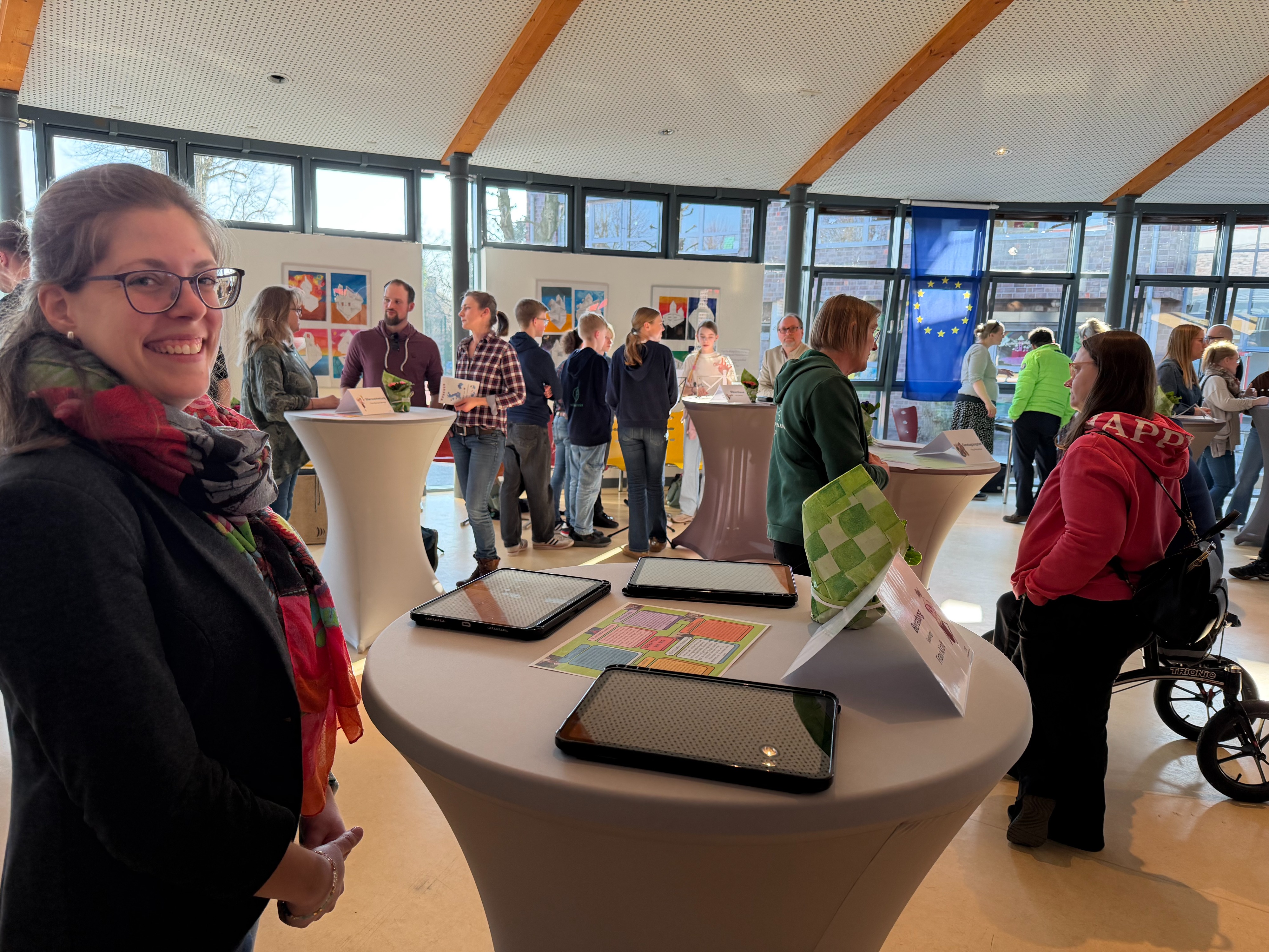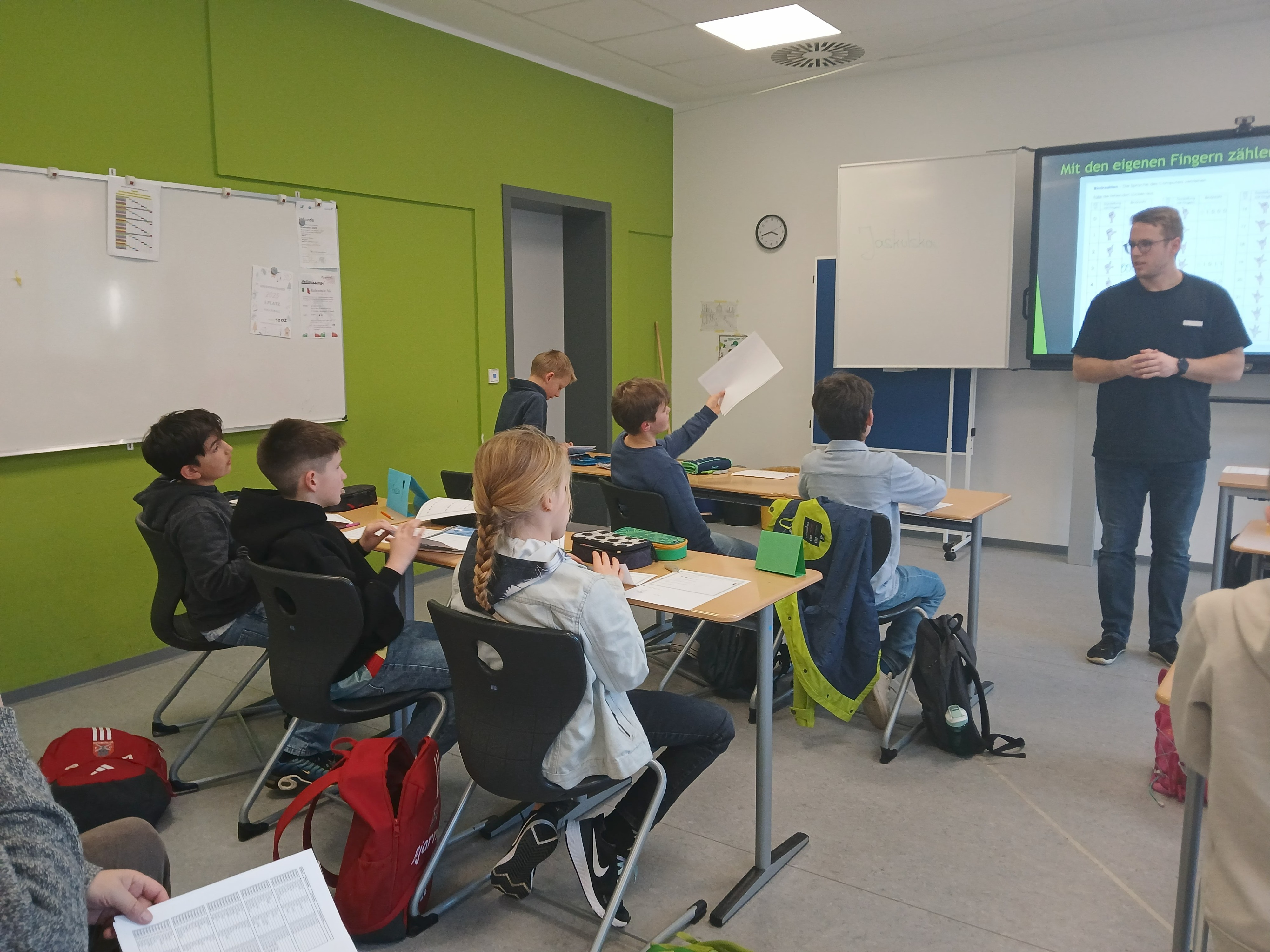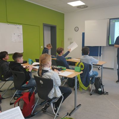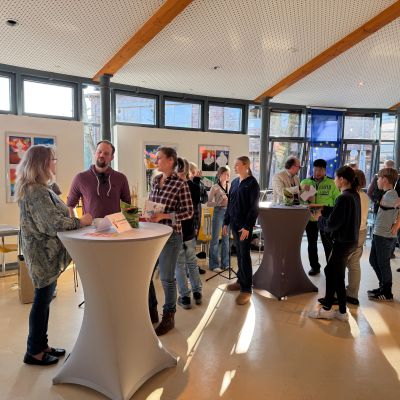 Währenddessen erhielten die Eltern ein vielfältiges Informationsangebot. Neben den Fachobleuten der Hauptfächer standen Ansprechpartnerinnen und Ansprechpartner bereit, die über die Bläserklasse, die Theaterklasse, die handyfreie Klasse, Medienangebote, den Ganztag, speziell die Ganztagsgruppe „Wellenläufer“, das Fahrtenkonzept, die bunte Themenwoche, Beratungsangebote, Lerncoaching, Schülergenossenschaft sowie über die Arbeit der Klassenleitungen informierten. Auch der Förderverein und die Elternvertretung stellten ihre Arbeit vor.