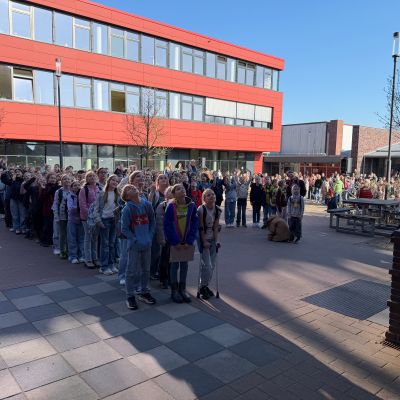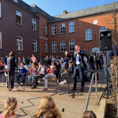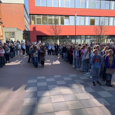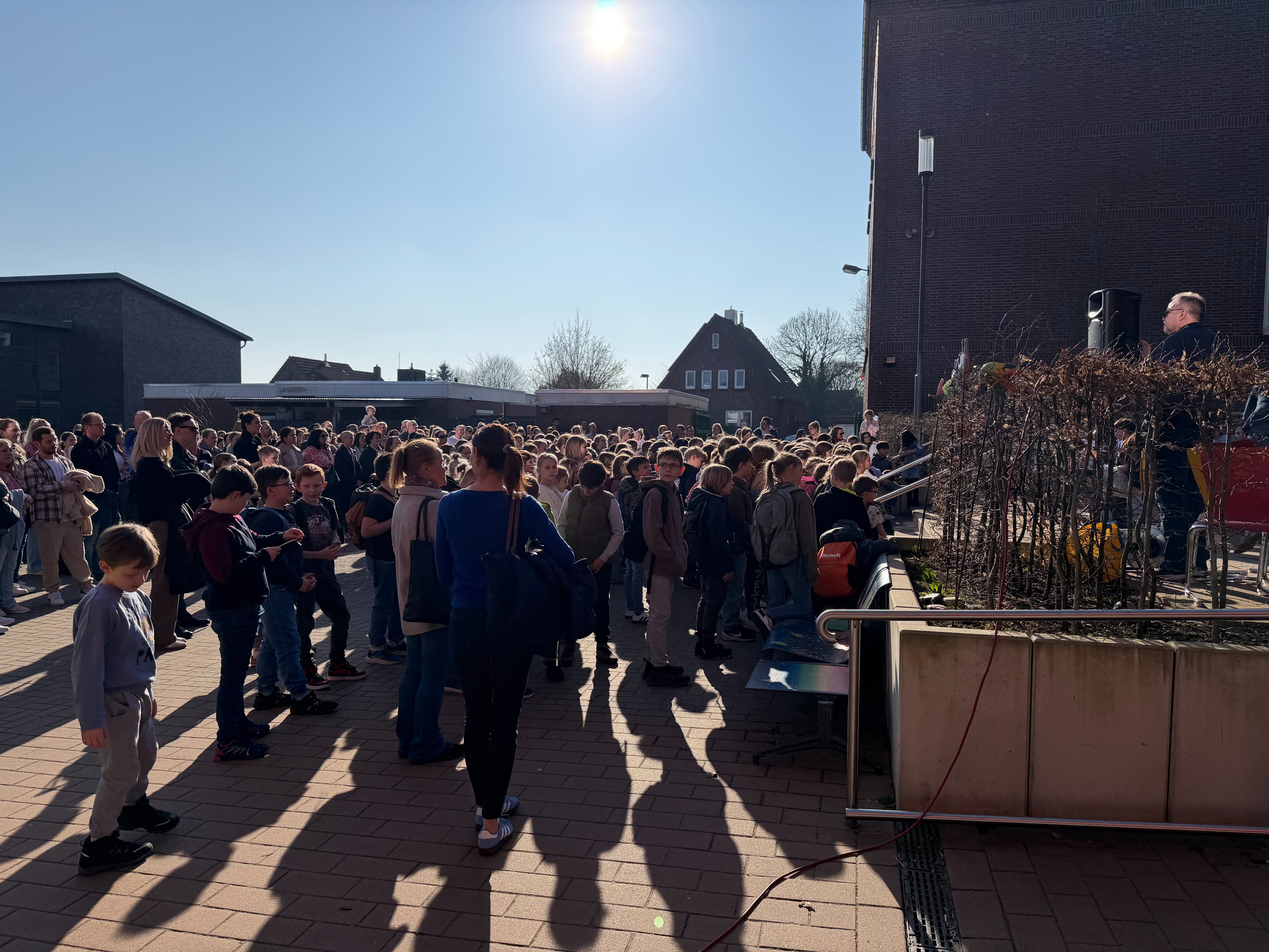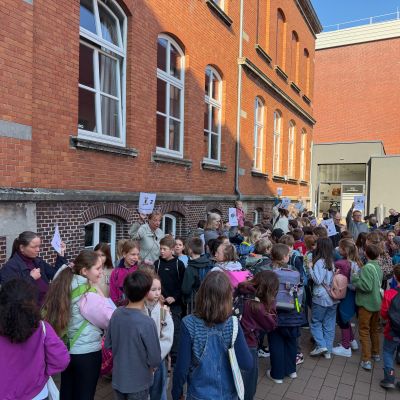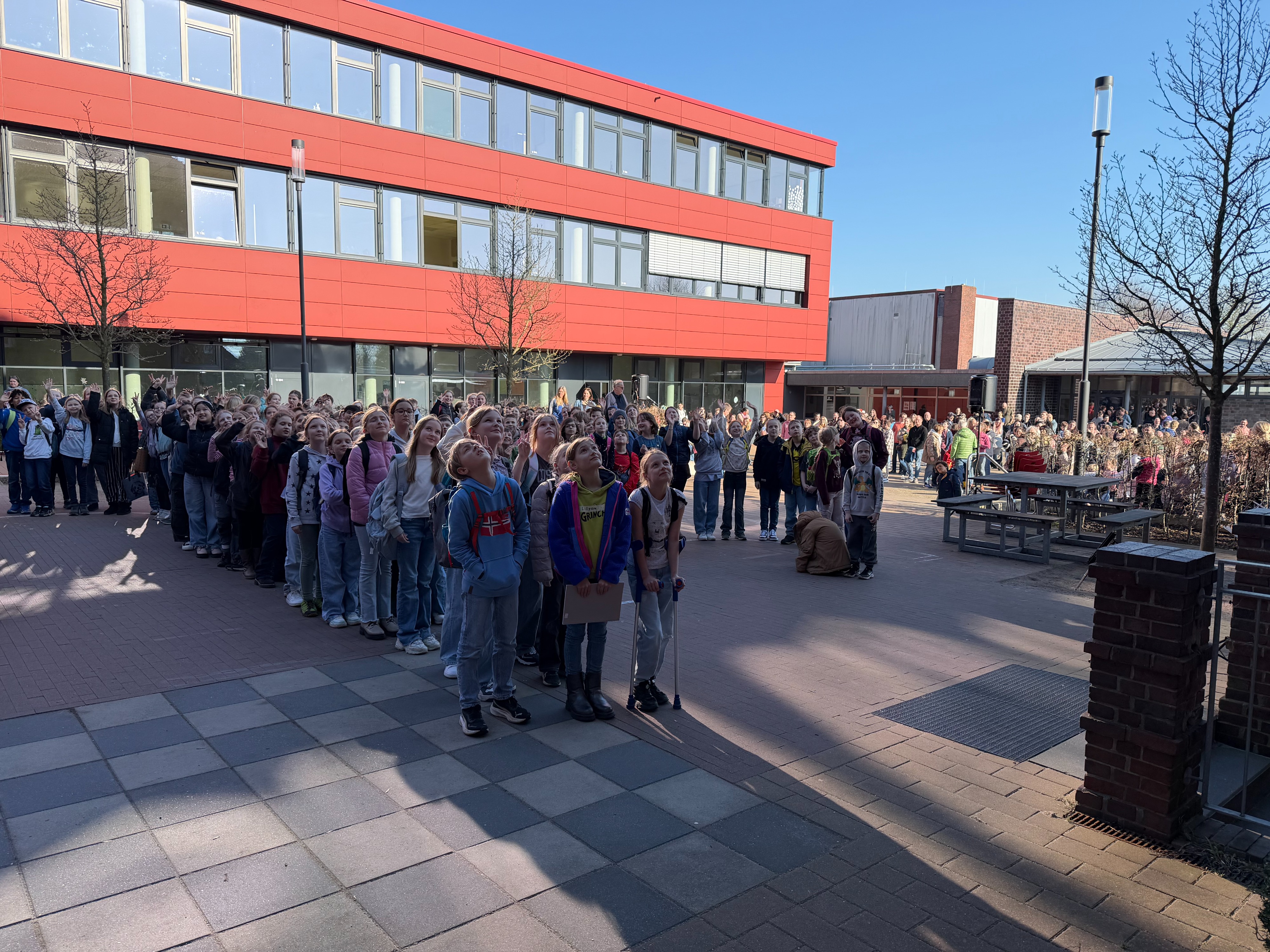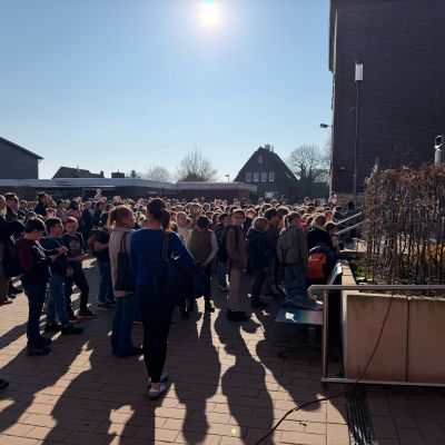 188 Schülerinnen und Schüler aus den umliegenden Grundschulen besuchten den Schnupperunterricht am 05. März am Mariengymnasium. Sie wurden auf dem Schulhof bei sonnigem Wetter gemeinsam mit ihren Eltern zunächst von der Bläserklasse 6b mit zwei musikalischen Stücken und anschließend vom Schulleiter Herrn Ploeger-Lobeck begrüßt.