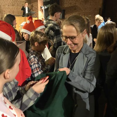 Zum Schluss überraschte Kati Finke alle Mitwirkenden mit einer kleinen Aufmerksamkeit aus ihrem großen Geschenkesack. Diese liebevolle Geste sorgte für viele strahlende Gesichter und bildete einen warmen, persönlichen Abschluss des Konzertabends.