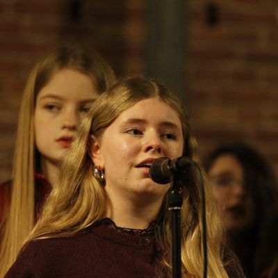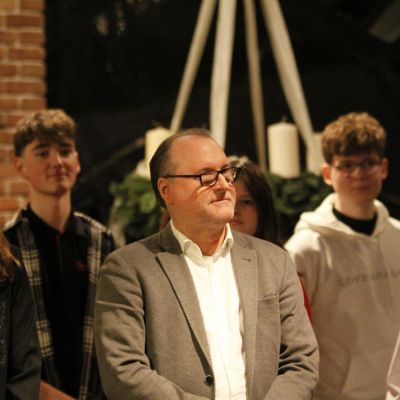 Eröffnet wurde das Konzert pünktlich um 19:00 Uhr durch die MG-Voices und die MG-JazzTones mit dem feierlichen „Veni, veni Emmanuel“. Das herausragende Solo von Cedrik und Dorothee, eindrucksvoll begleitet von den Bläsern der JazzTones, sorgte gleich zu Beginn für Gänsehaut. Begrüßt wurden die Gäste anschließend von Pastor Harland und der stellvertretenden Schulleiterin Kati Finke, die beide die besondere Bedeutung dieses musikalischen Abends hervorhoben.