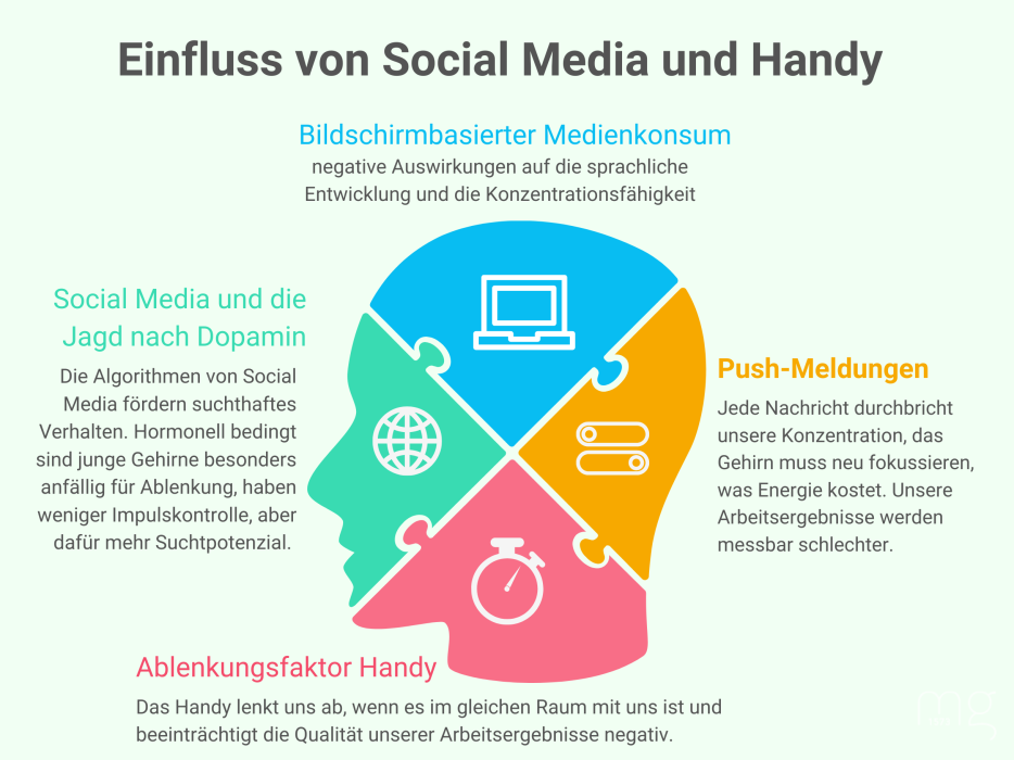 Wir alle kennen außerdem die mit diesen Erkenntnissen korrelierenden Studienergebnisse der letzten Jahre: große Bildungsstudien bescheinigen die sinkende Leistungsfähigkeit deutscher Schüler*innen. Andere Studien weisen dafür einen Anstieg an Mobbing, oft in Form des Cybermobbings, und an suchtartigem Medienkonsum besonders bei Social Media nach. Wieder andere stellen die aus dieser Gesamtgemengelage resultierenden großen psychischen Probleme bei Jugendlichen spätestens seit der Corona-Pandemie heraus.