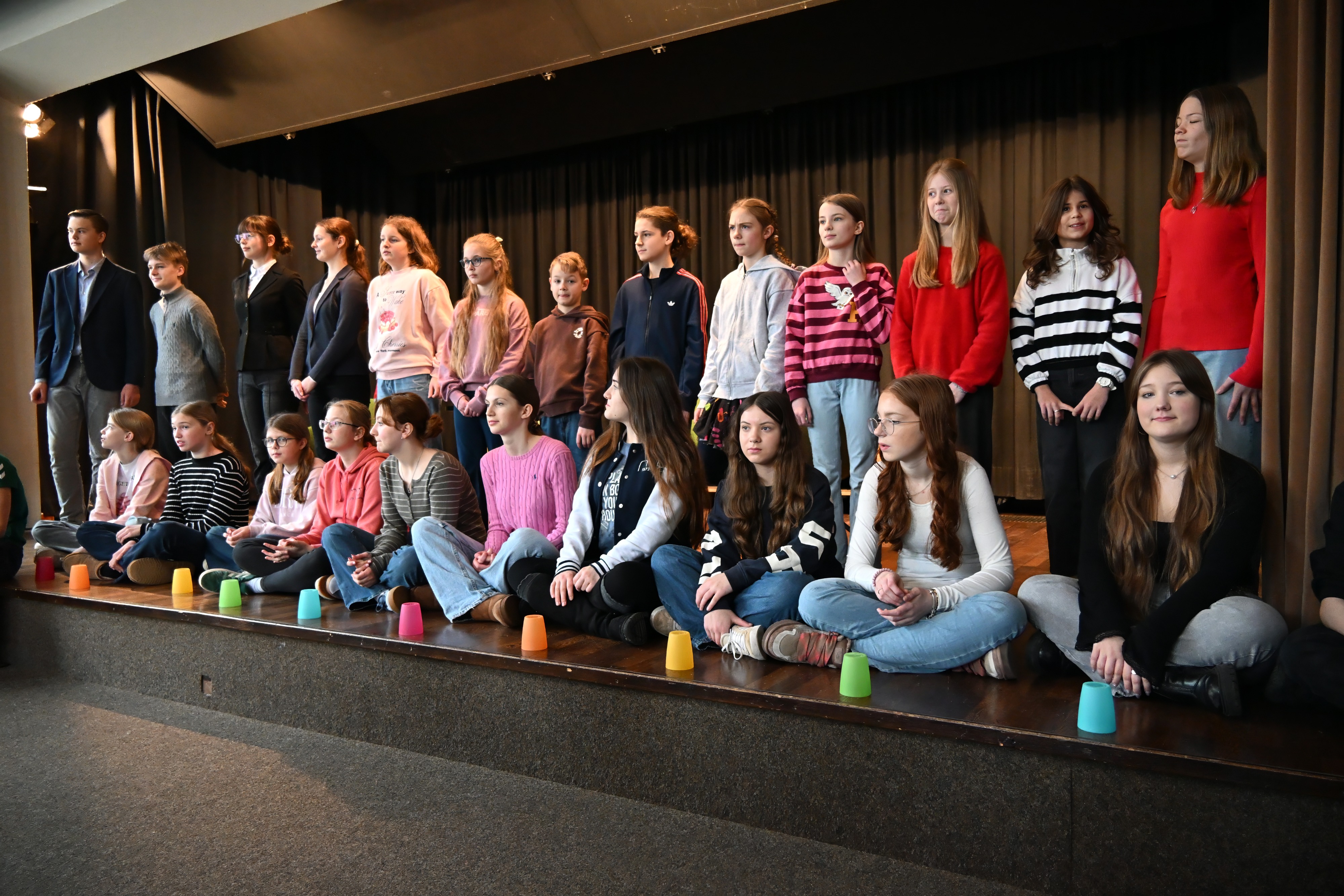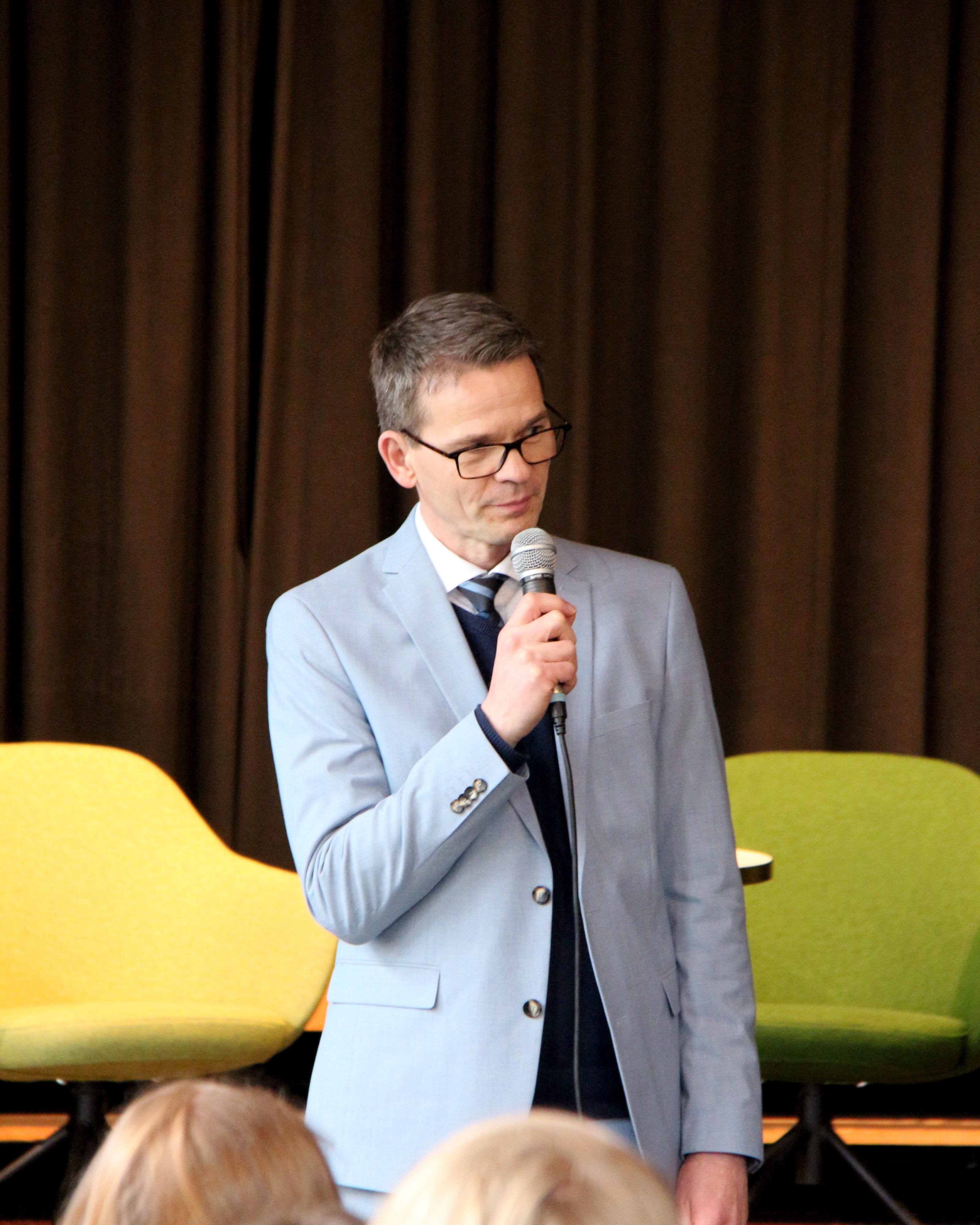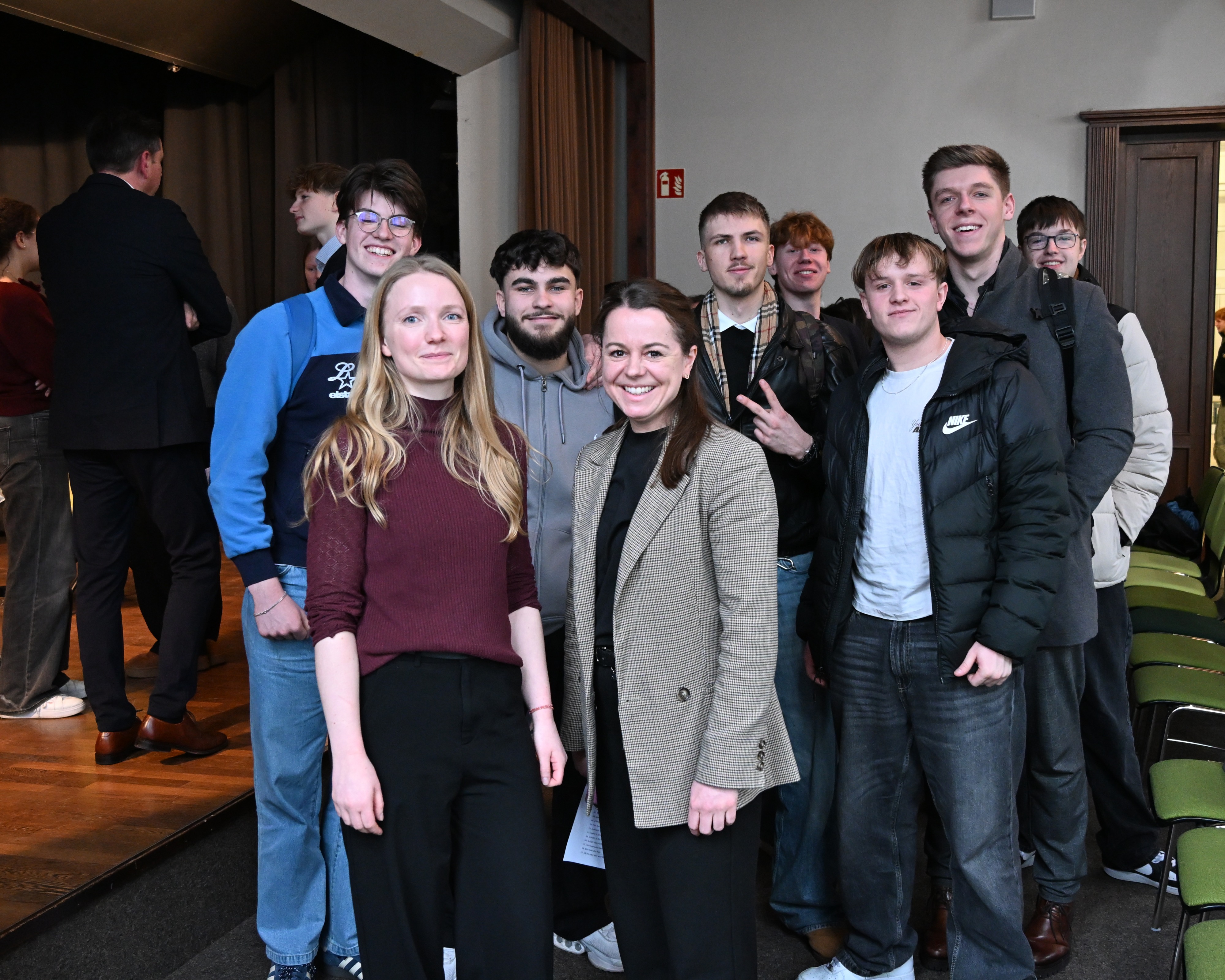 Um 9.50 Uhr folgte in der Aula die offizielle Begrüßung durch die Lehrkräfte, die die Podiumsdiskussion vorbereitet hatten: Marie Hoheisel (kommissarische Fachobfrau), Stephanie Gruhle und Ralf Boës. Als weitere Gäste waren Landrat Sven Ambrosy sowie die zuständige schulfachliche Dezernentin Frau LRSD’ Kletzin eingeladen. Für den musikalischen Auftakt sorgte der Schulchor „mg-voices“ unter der Leitung von Frau Harland.