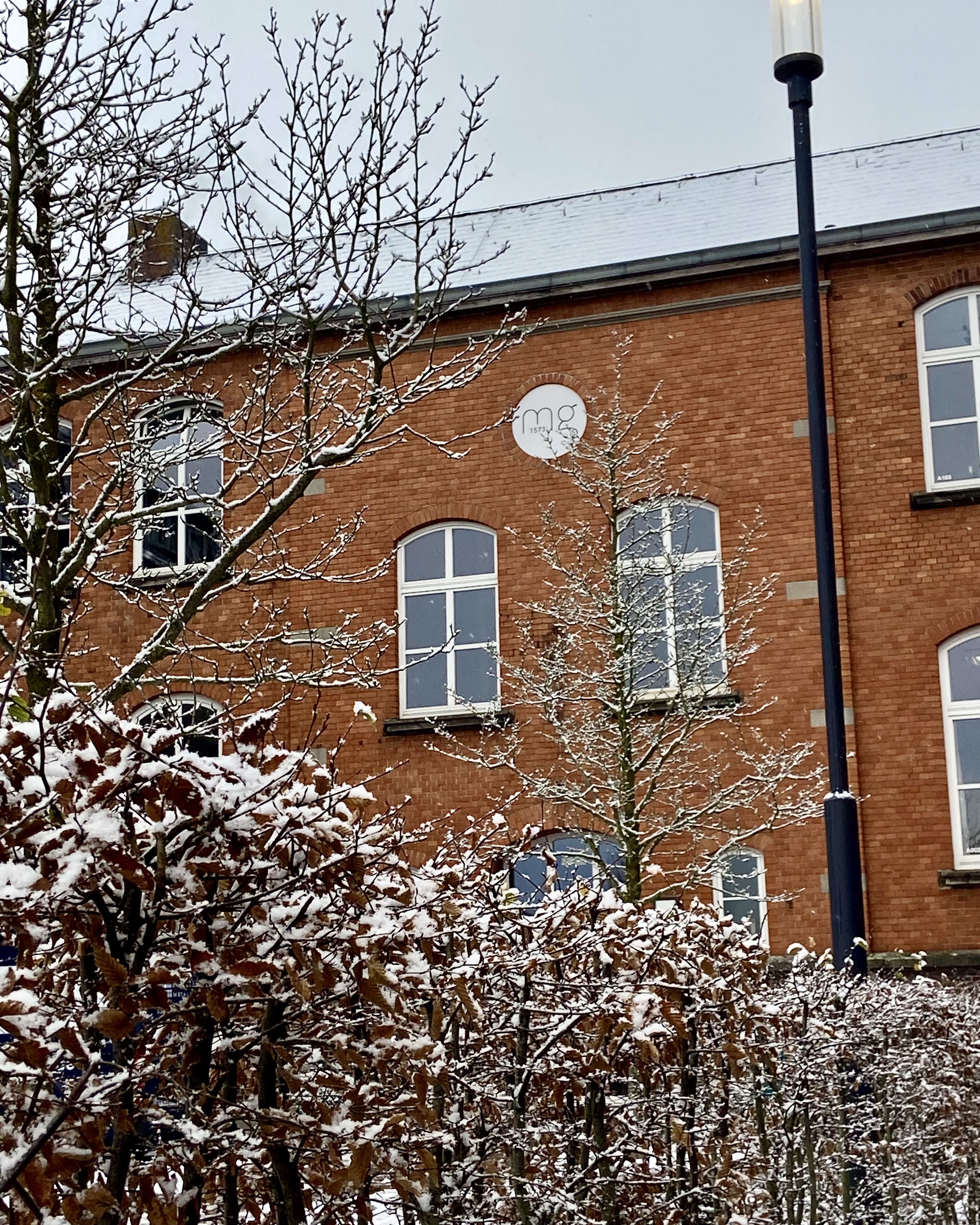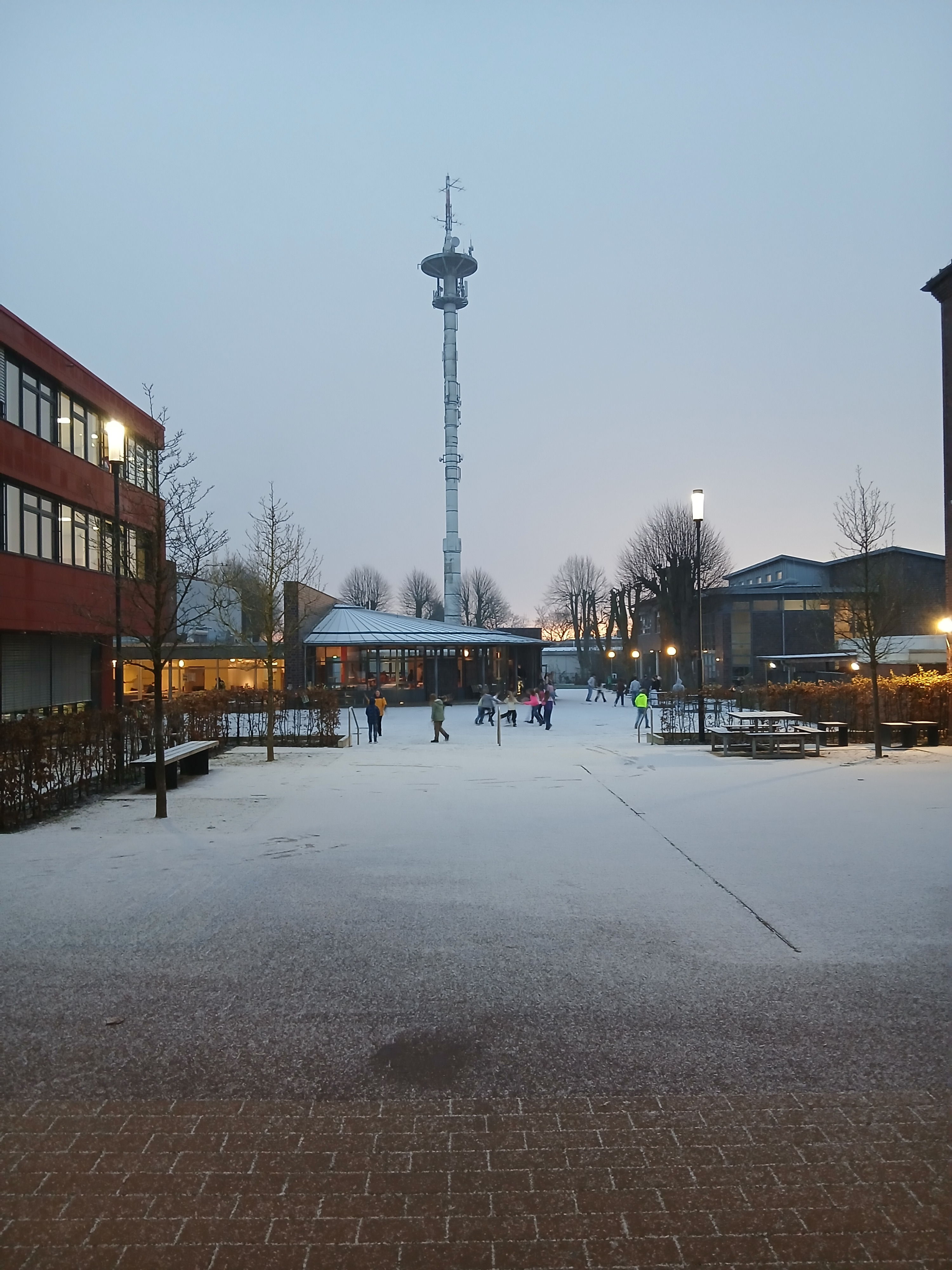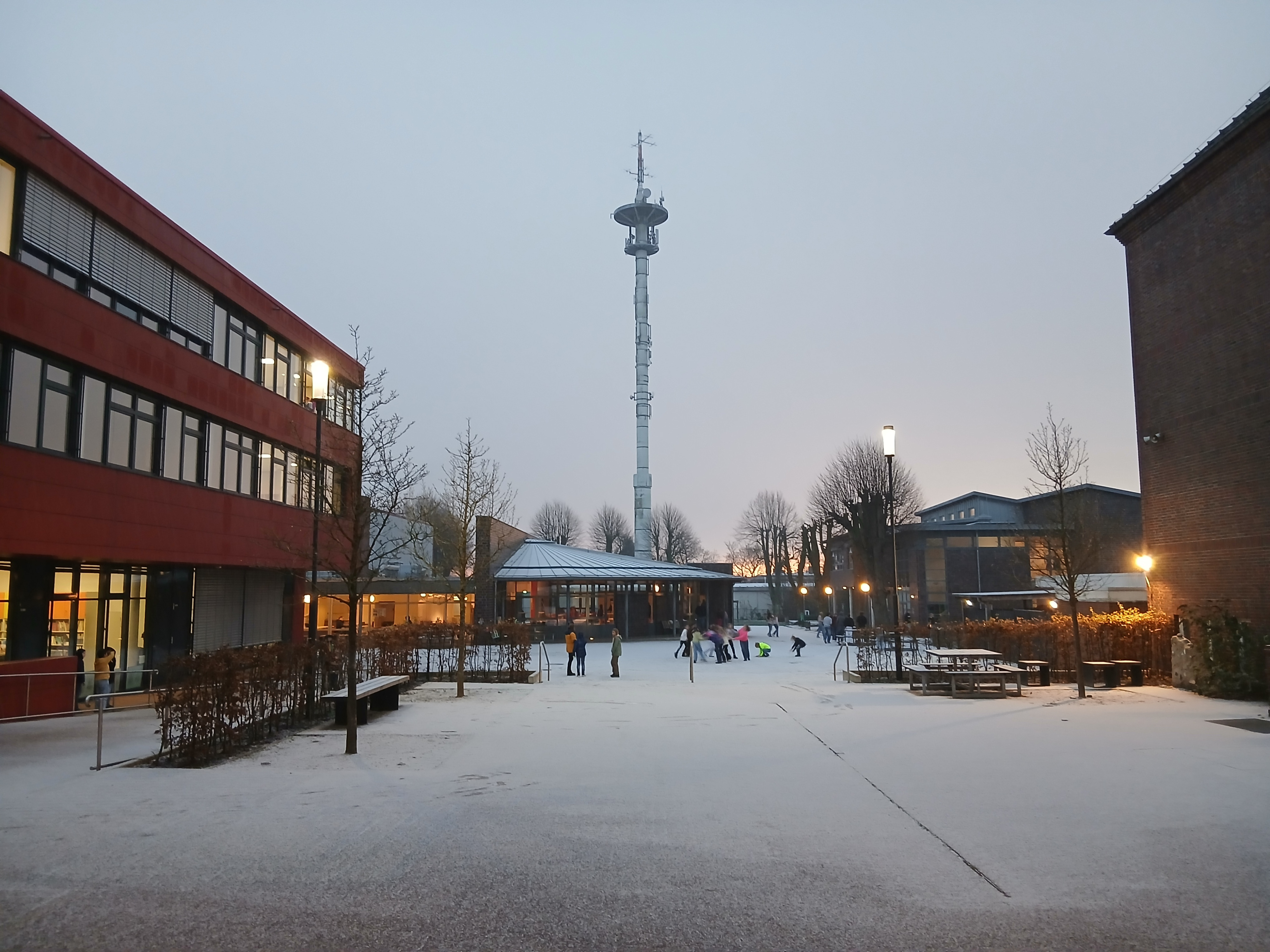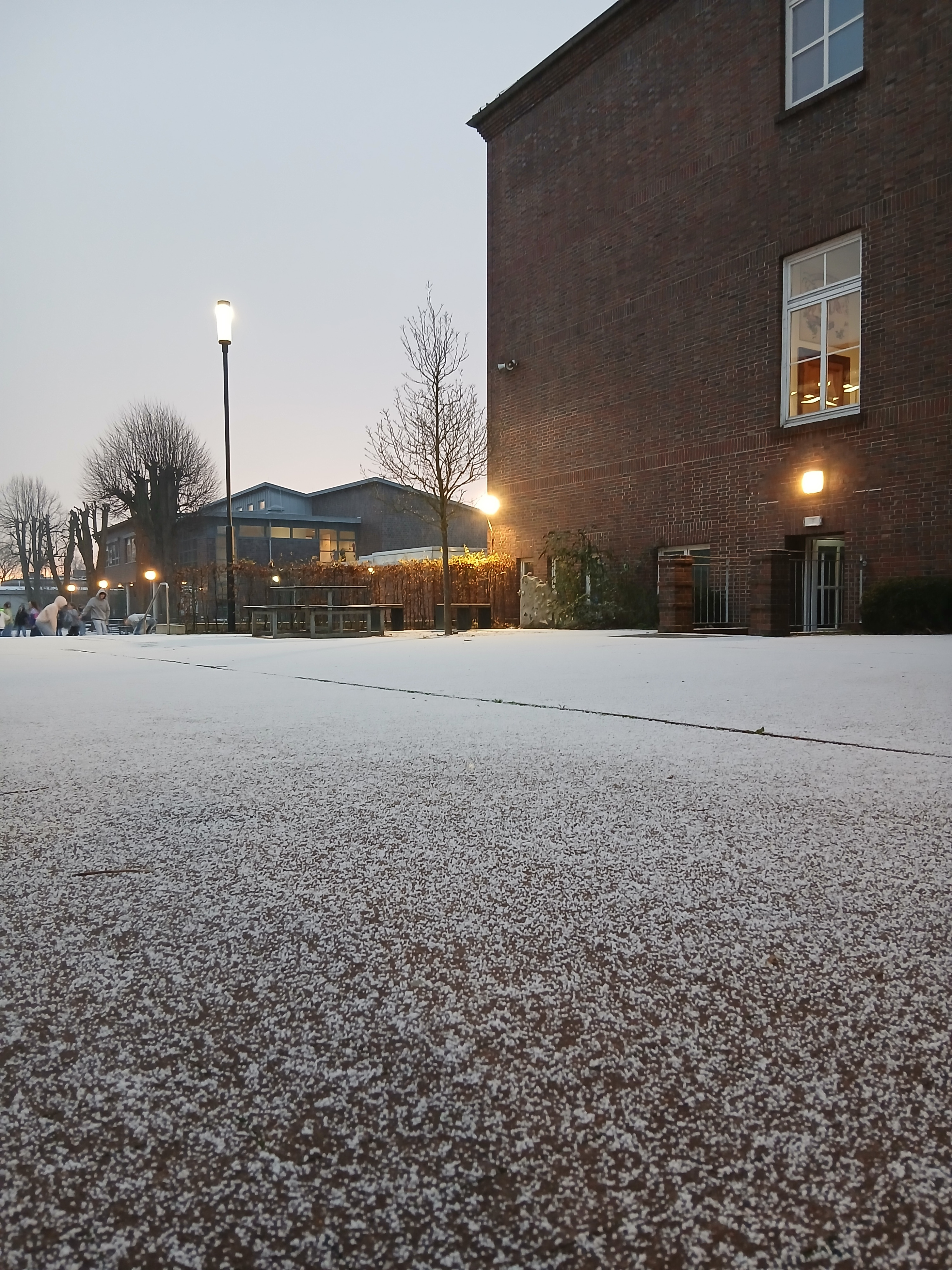 Am Freitag gab es den ersten Schneefall in diesem Schuljahr. Die Klasse 5b sowie der eA-Kunstkurs der Jahrgangsstufe waren als erstes draußen, um sich am Schnee zu erfreuen und ihn für künstlerische Projekte, wie Schneeplastiken zu verwenden.