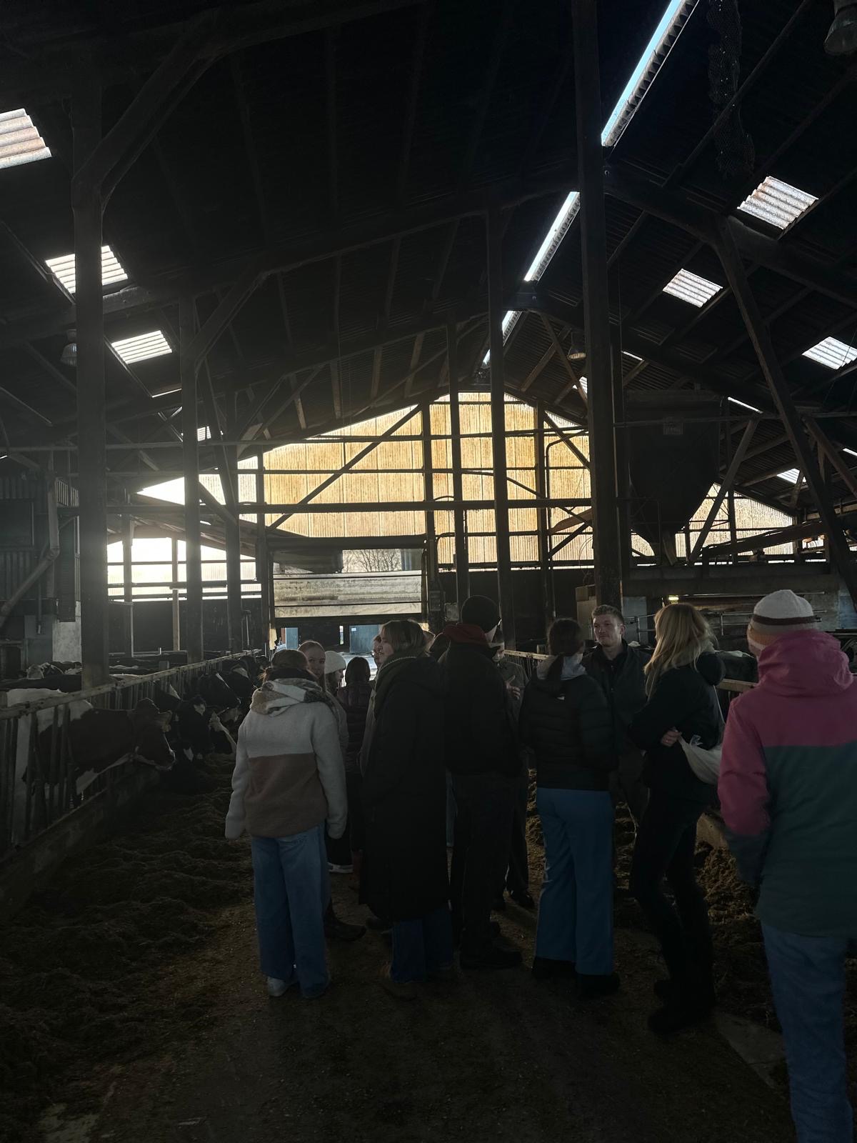 Mitte Januar ging es für den Erdkunde Leistungskurs auf den Hof von Herrn Melchers in Cleverns. Der familiengeführte Betrieb wurde uns aus erster Hand, von Herrn Melchers und seinem Sohn selbst, erklärt und alle dort ablaufenden Prozesse gezeigt. Von Melkrobotern bis Fütterungsrobotern schaute sich der Kurs viele der technologischen Entwicklungen im Bereich der Milchviehwirtschaft an. Der Strukturwandel in der Landwirtschaft ist ein abiturrelevantes Thema im ersten Halbjahr des zwölften Jahrgangs.