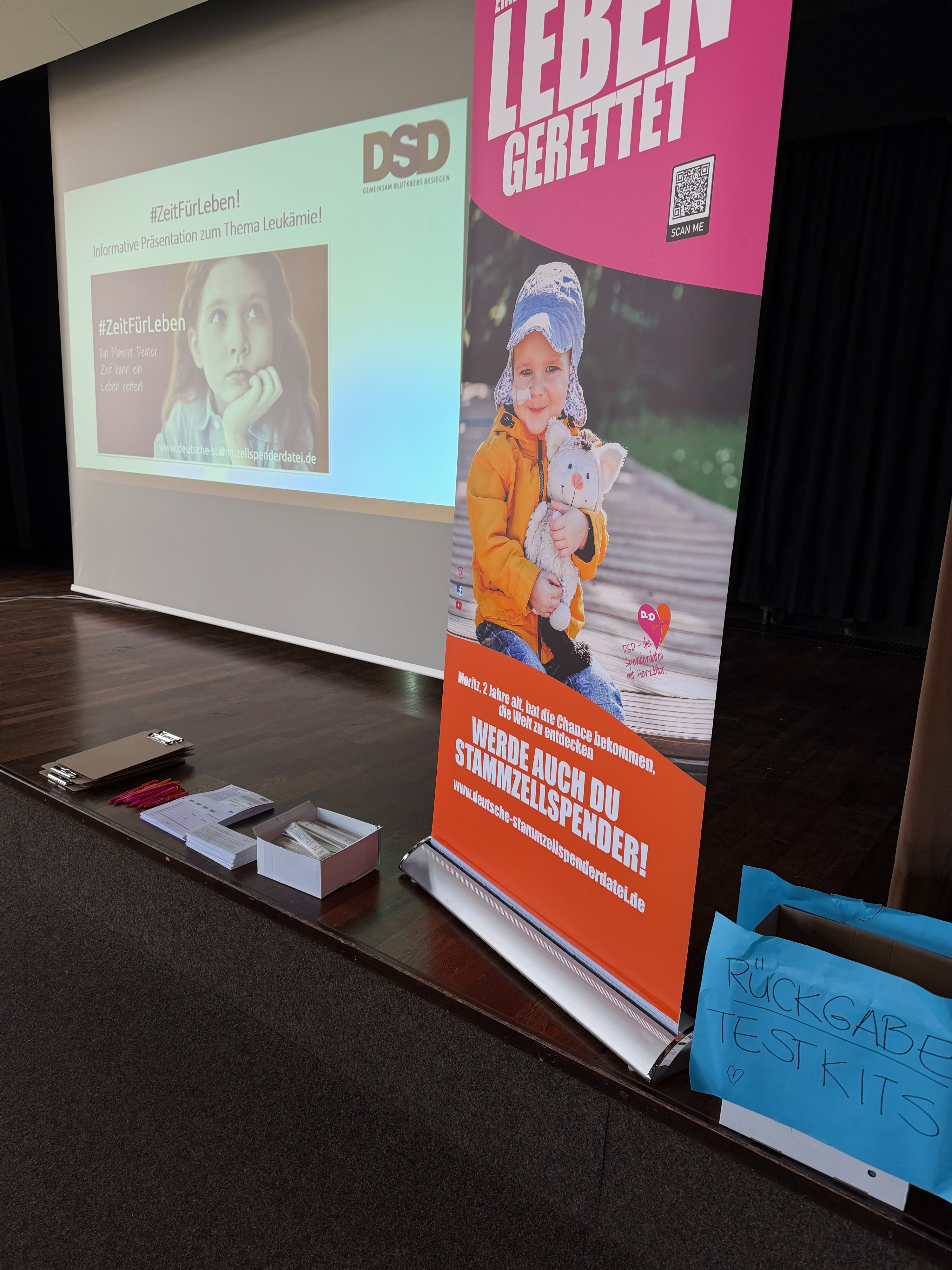 Am Dienstag, 10.03.2026, fand ein Workshop mit anschließender Möglichkeit zur Typisierung für den Jahrgang 12 statt. Herr Gündling von der Deutschen Stammzellspenderdatei informierte die Schülerinnen und Schüler zunächst in einem etwa 20-minütigen Vortrag über die Krankheit Leukämie und die Behandlungsmöglichkeiten.