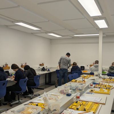 Vom 26. bis zum 30. Januar 2026 waren die Klassen jeweils einmal von der 1. bis zur 6. Stunde vor Ort. Im Mittelpunkt stand dabei das Modul „Blinkschaltung“, das auf den elektronischen Grundlagen der Jahrgangsstufe 7 (Taschenwächter) aufbaute und die Kenntnisse der Schülerinnen und Schüler gezielt vertiefte.